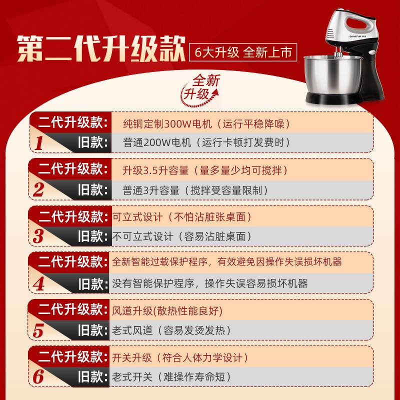 顺然300W打蛋器电动家用台式手持小型烘焙蛋糕奶油蛋清搅拌打发器