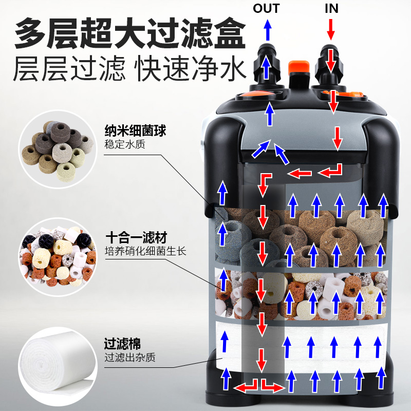 松宝过滤器鱼缸过滤桶三合一净水静音循环泵外挂滤筒草缸外置滤盒