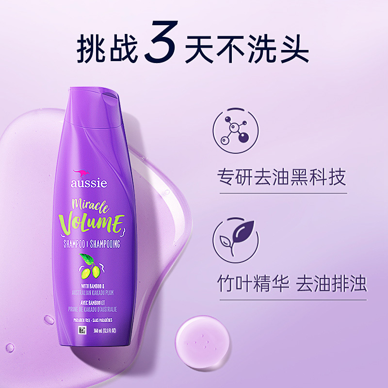 Aussie紫袋鼠丰盈水润洗发水清爽控油蓬松洗头膏洗护宝洁官方进口