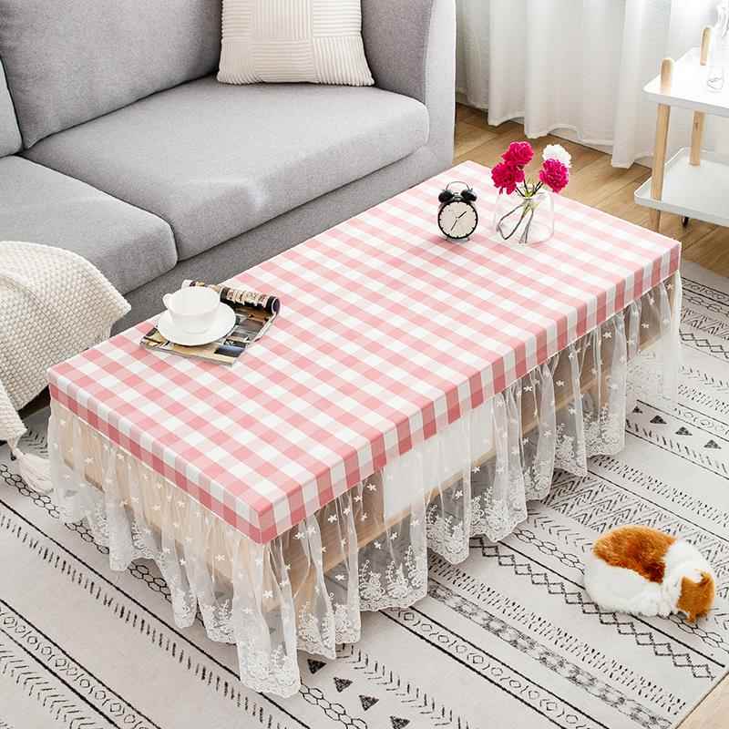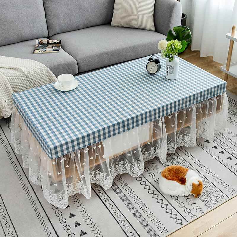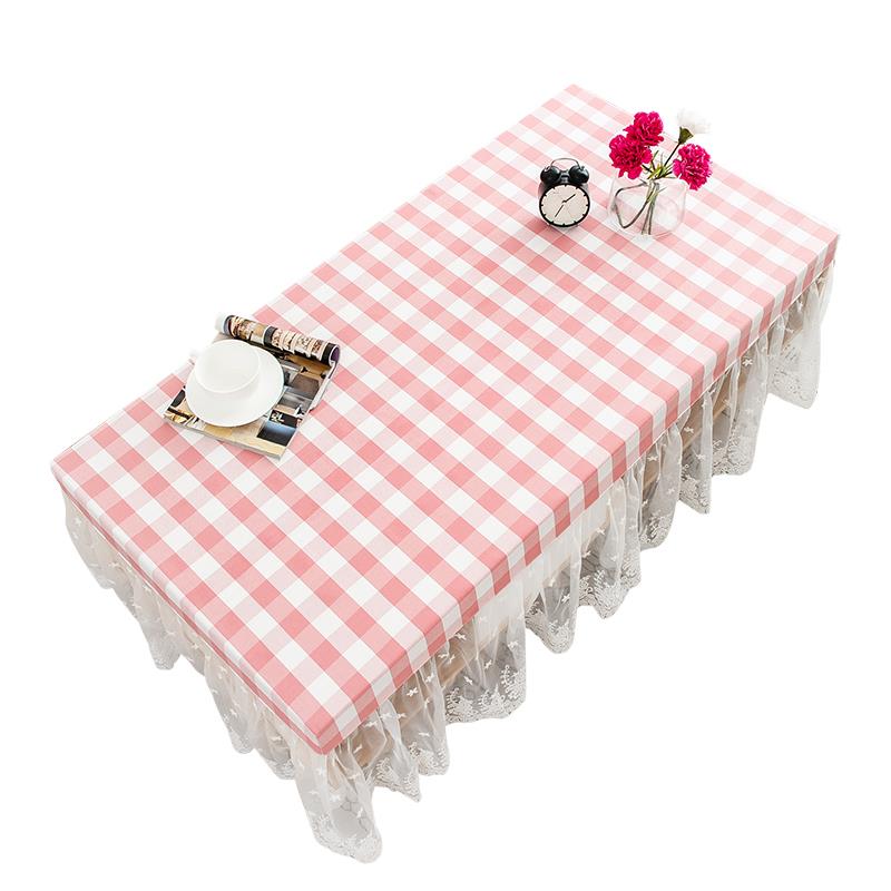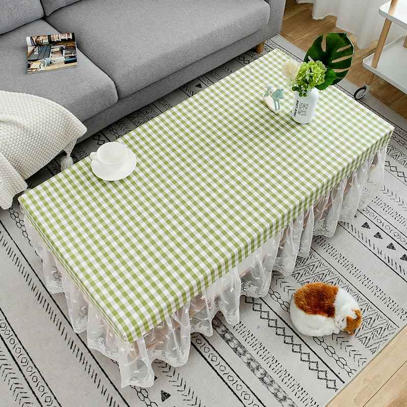 小清新格子桌布桌罩北欧棉麻布艺长方形防尘蕾丝茶几餐桌台布定制