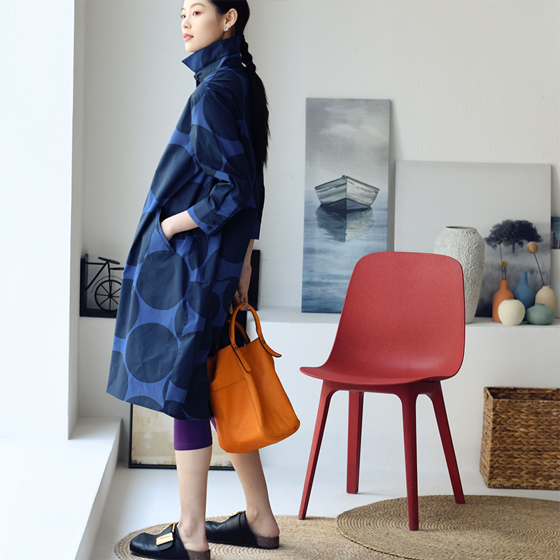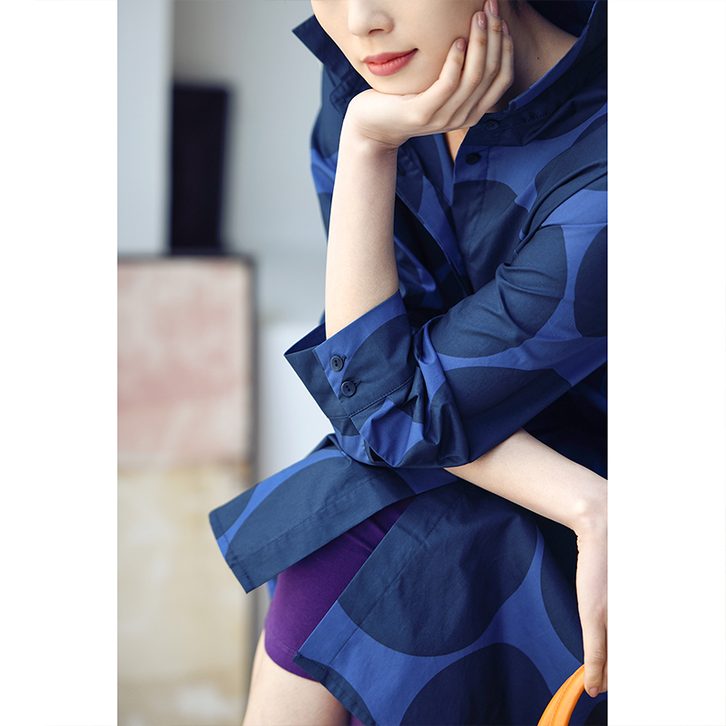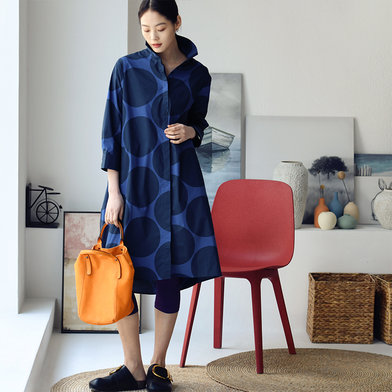 包邮 C8112C 通勤文艺茧型七分袖长款波点衬衫女大圆点连衣裙春夏