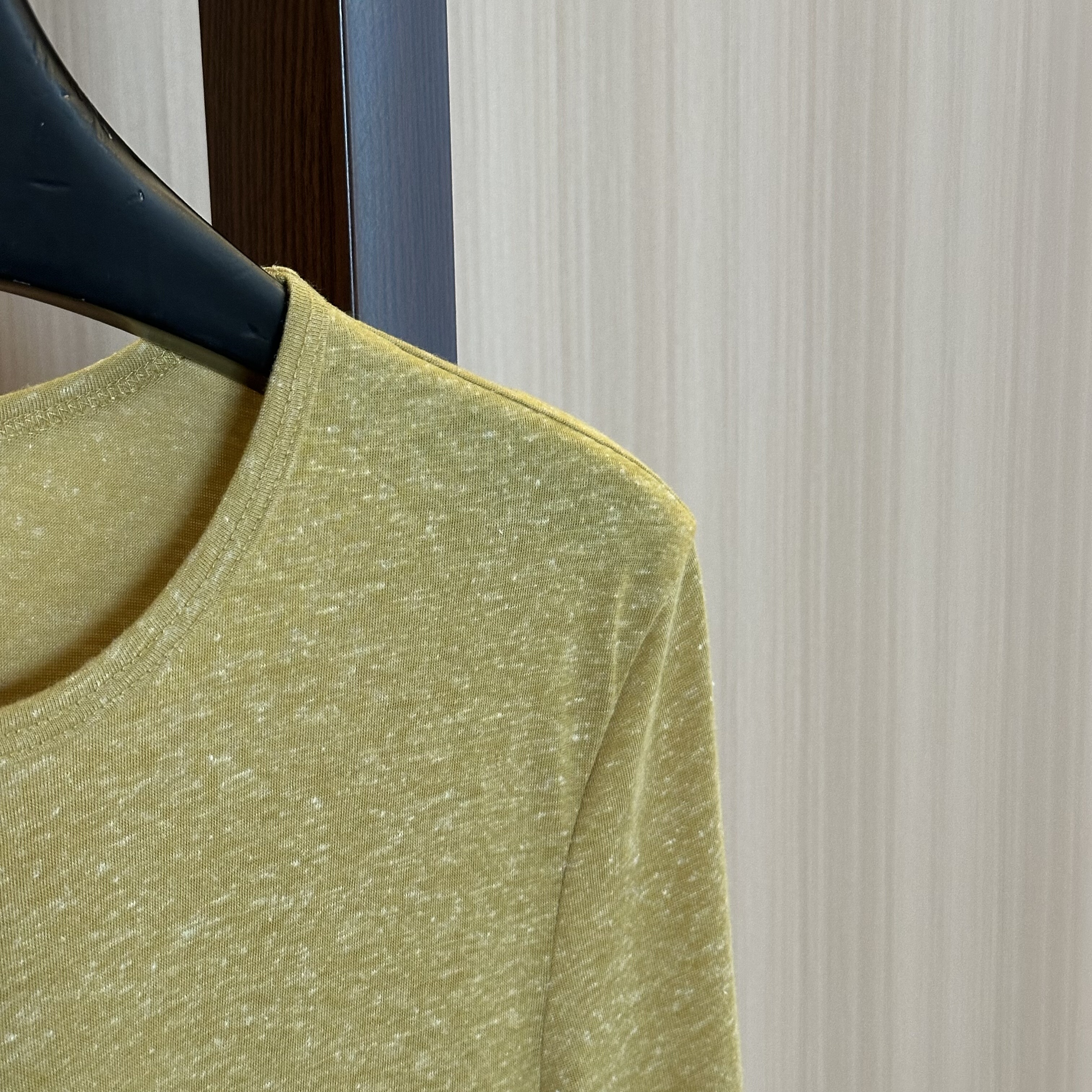 WMM姜黄色砂砂雪花长袖打底衫圆领修身纯色百搭简约女新款内搭