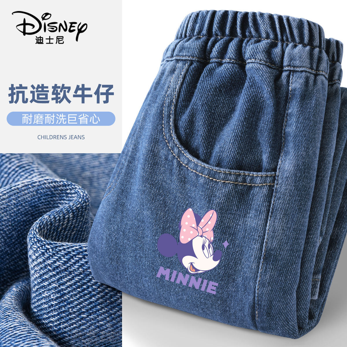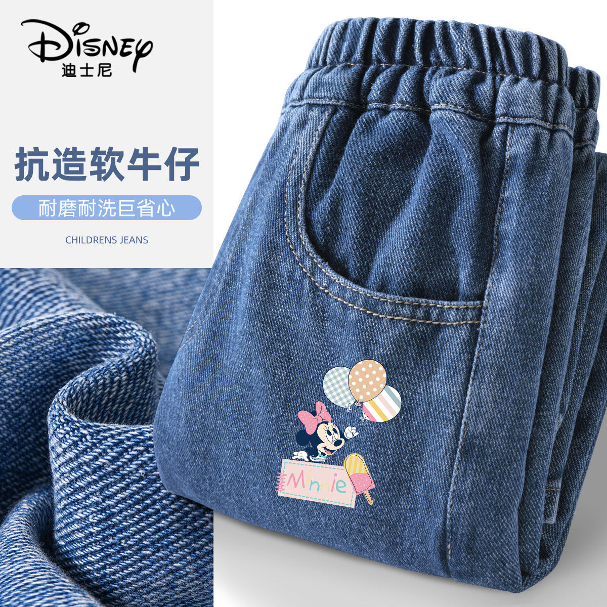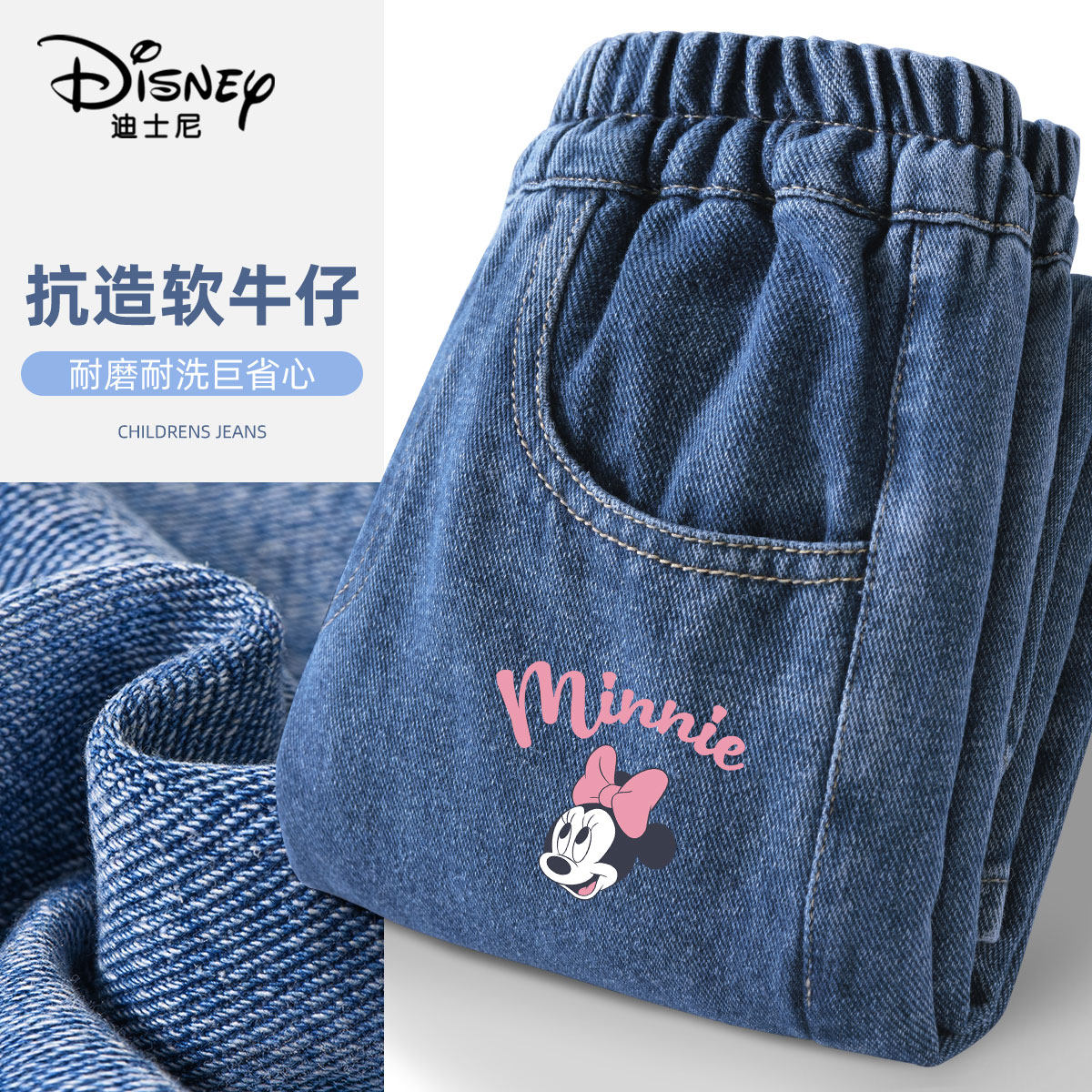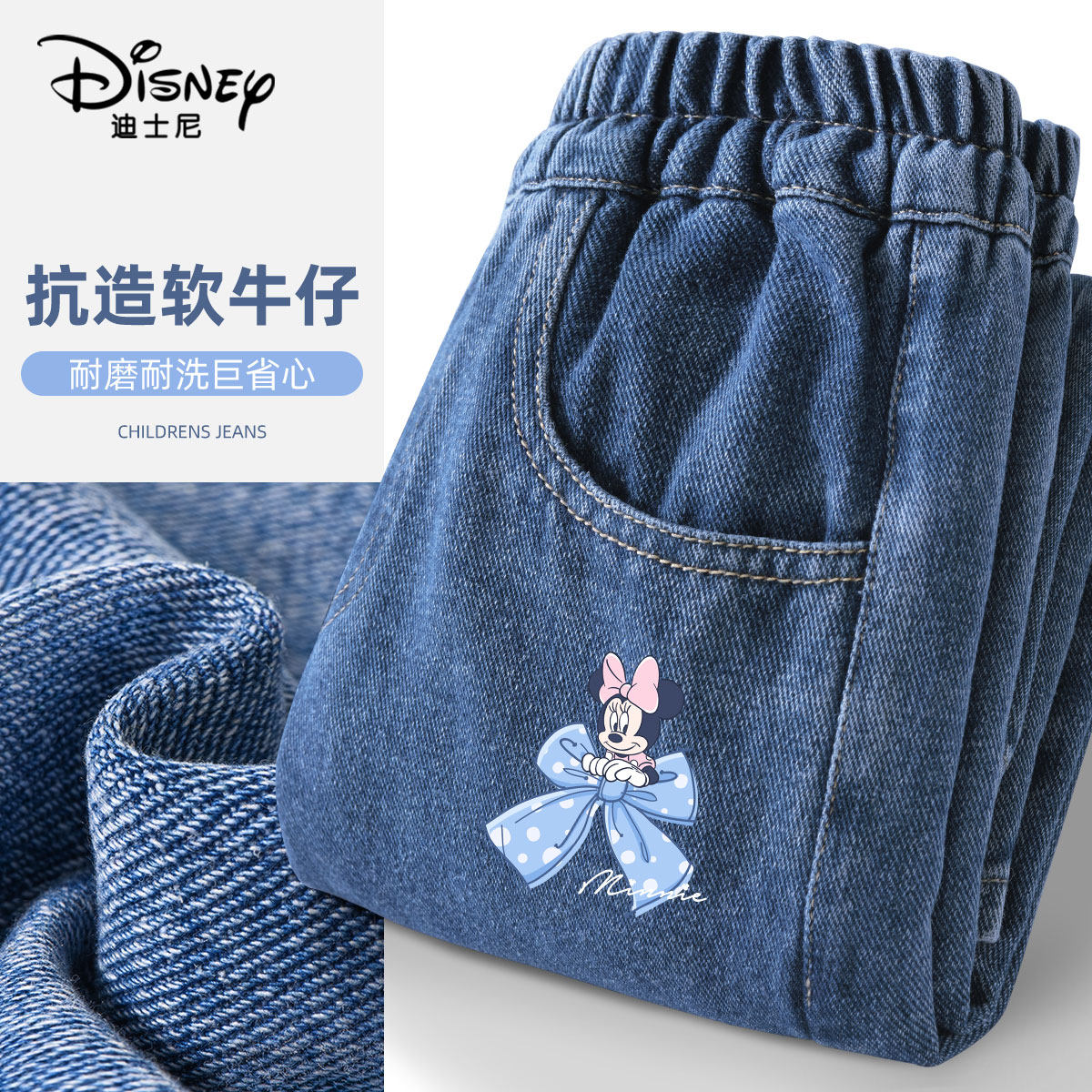 迪士尼女童阔腿牛仔裤春秋2026新款薄款直筒女孩宽松长裤儿童裤子