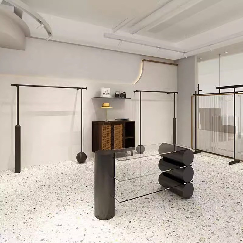 服装店展示架上墙黑色陈列架不锈钢烤漆挂衣架壁挂女装店货架