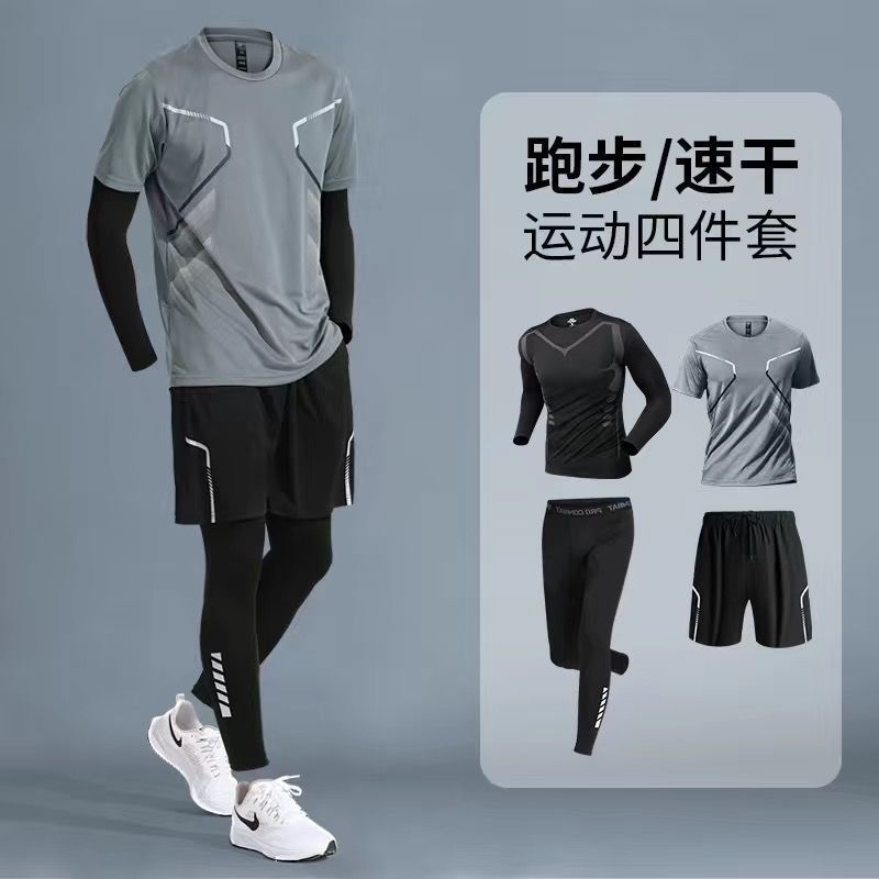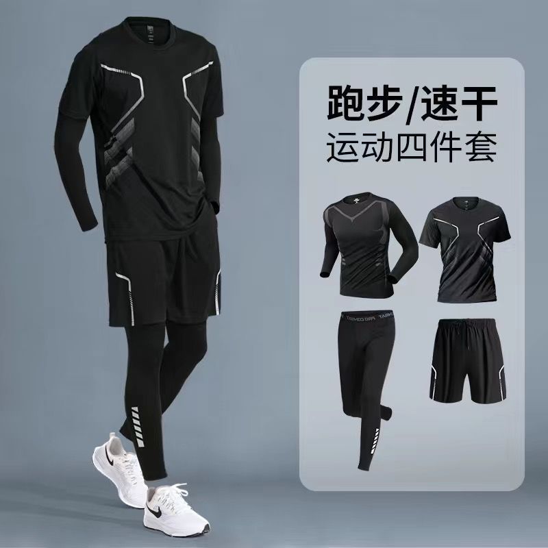 运动套装男春秋跑步速干衣骑行晨跑健身服训练紧身长袖长裤四件套
