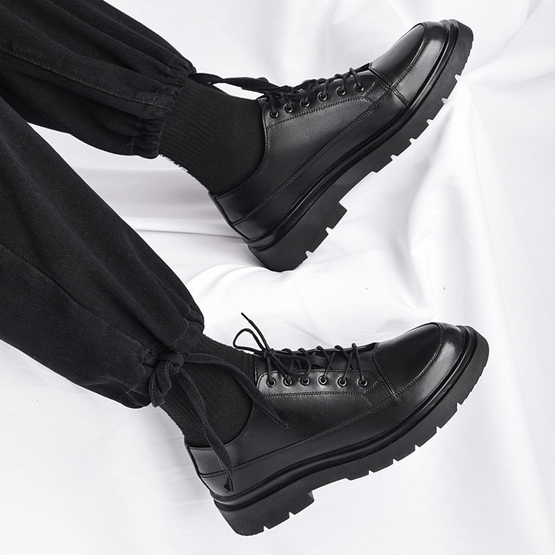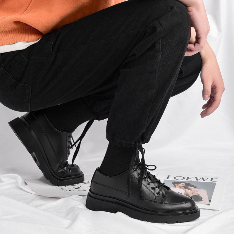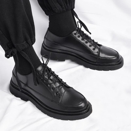 男士英伦风皮鞋商务正装夏季透气学生软底增高休闲黑色短靴子