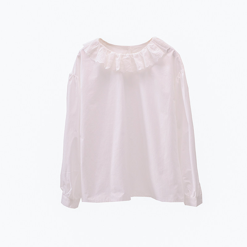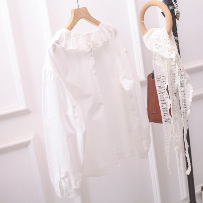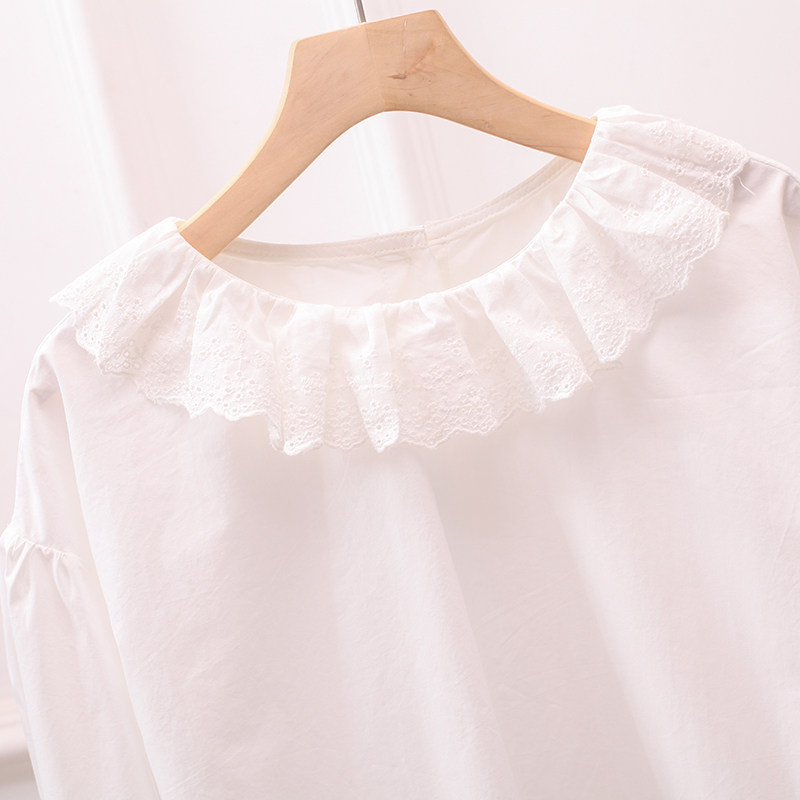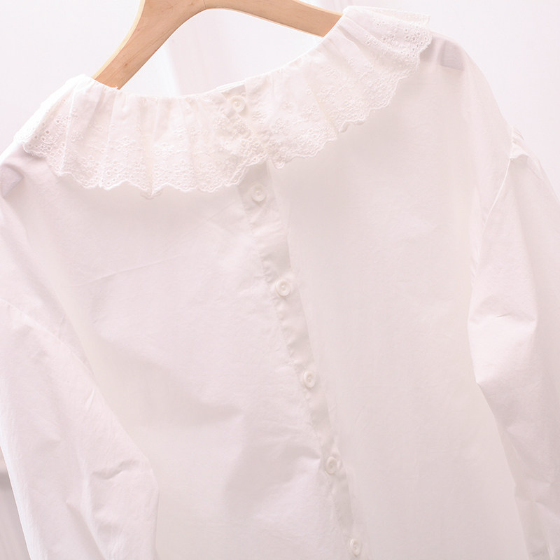 甜美日系森女刺绣荷叶领长袖白衬衫宽松百搭宽松打底衫上衣文艺胖