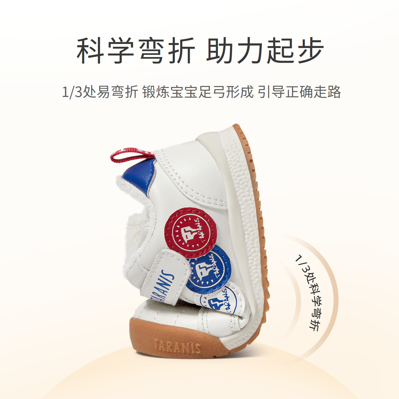 泰兰尼斯童鞋冬季新款婴儿学步鞋男童加绒二棉机能鞋女宝宝小白鞋