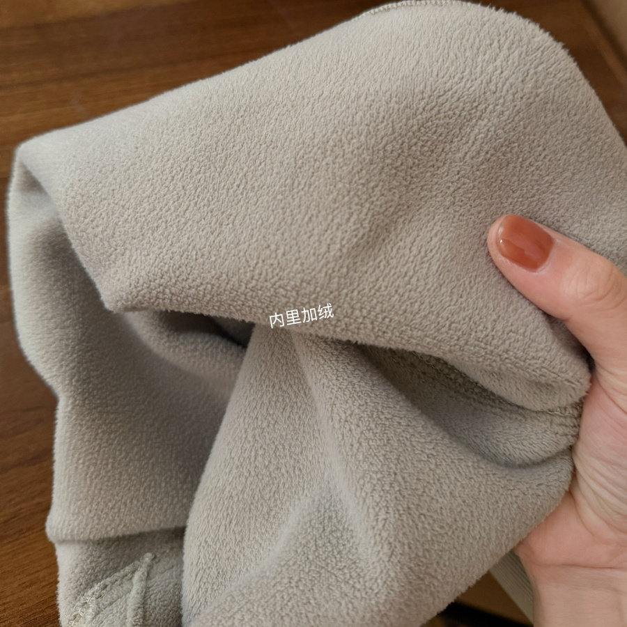 此外 浅色水洗做旧弯刀阔腿裤女2025冬季新款加绒加厚牛仔裤长裤