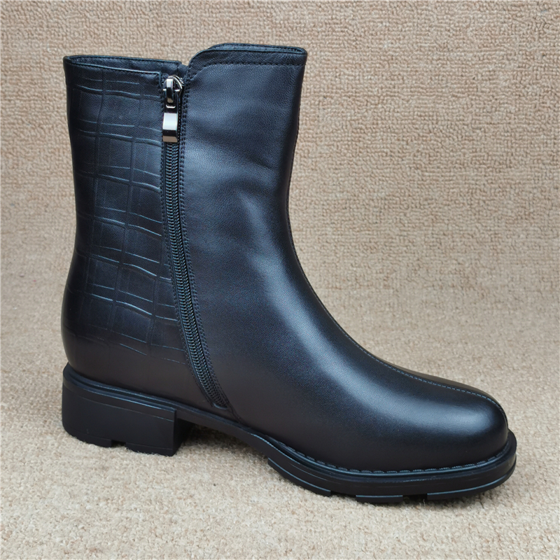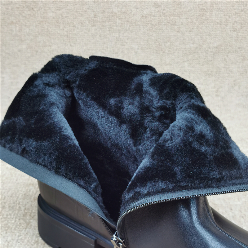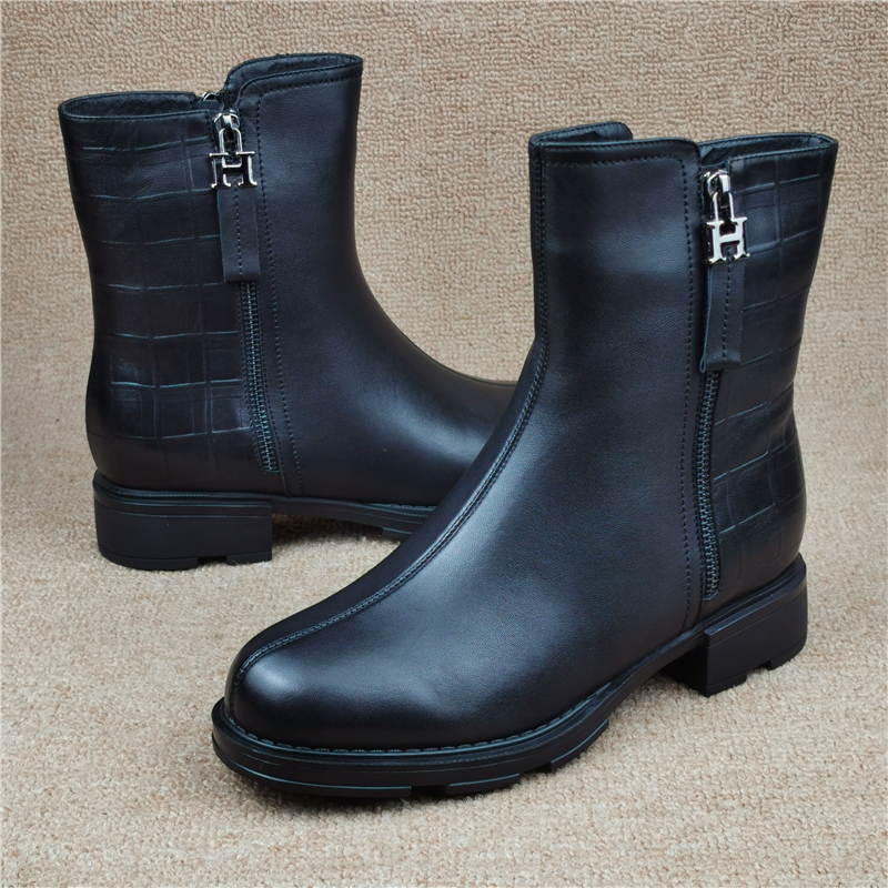 撤柜断码处理女鞋冬款真皮加绒大棉低跟侧拉链时尚百搭羊皮短靴潮