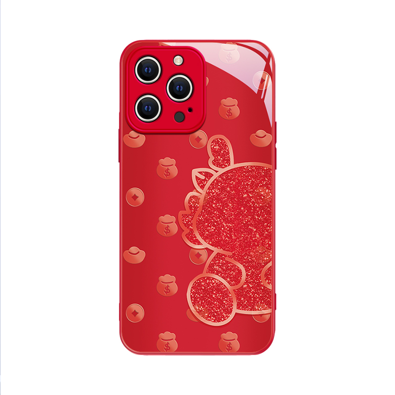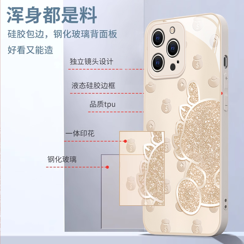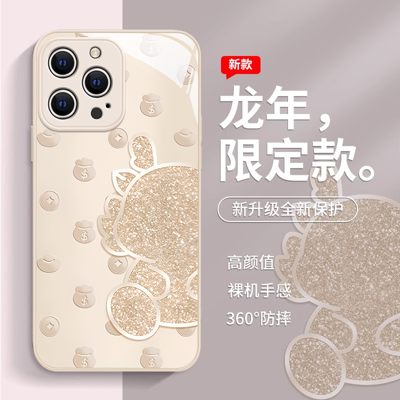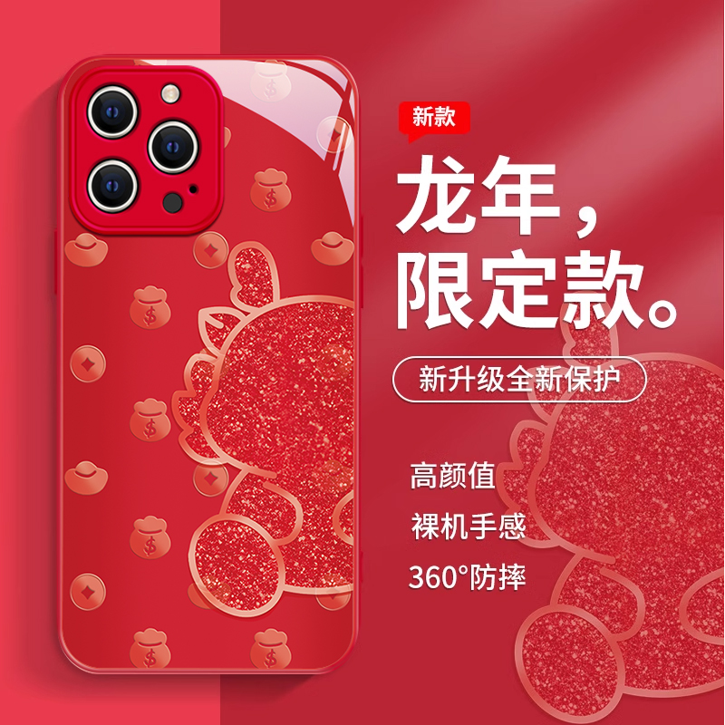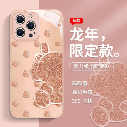 适用苹果15promax手机壳新款14pro新年12mini轻奢简约个性13卡通高级感12全包防摔11创意8/7plus玻璃女生6s