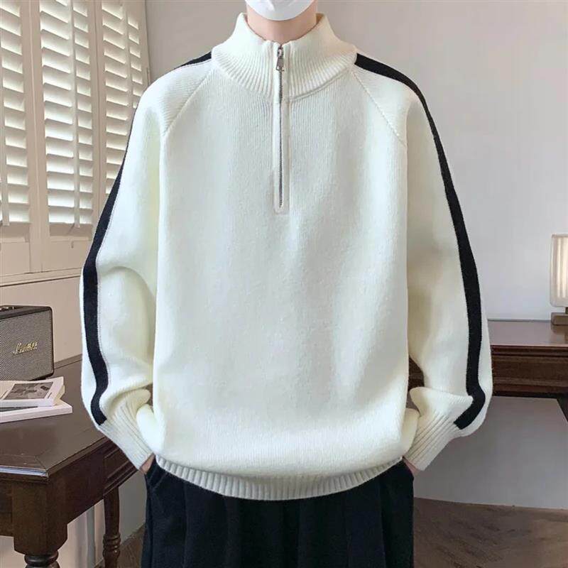 伊锦阁特色服饰店半高领拉链立领毛衣男秋冬加厚中年针织衫男装