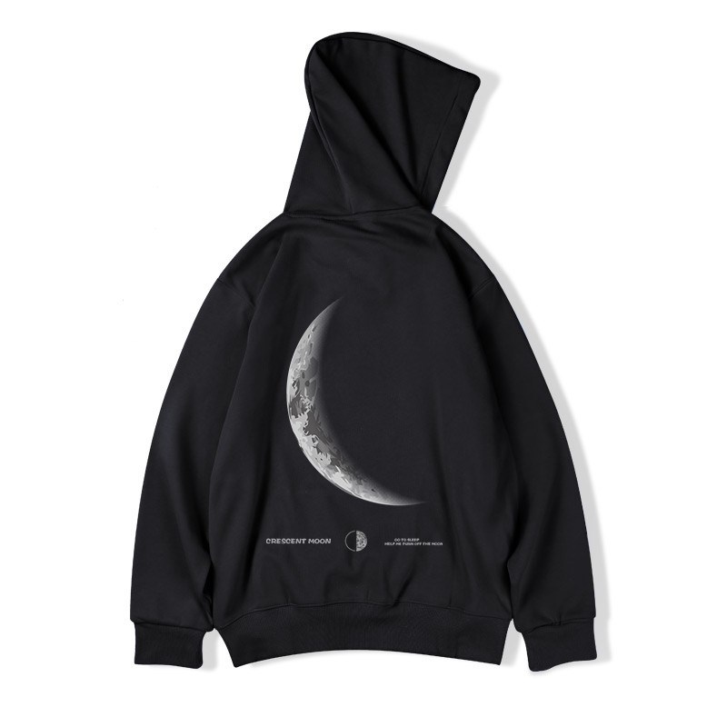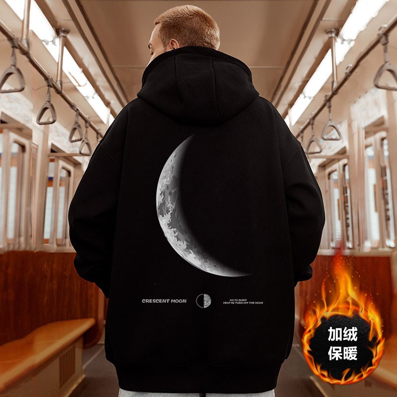 国潮嘻哈月亮宽松连帽套头卫衣男加肥大码加绒加厚胖子帽衫外套冬