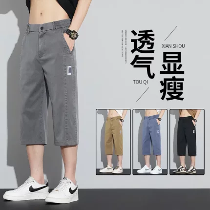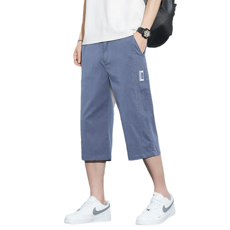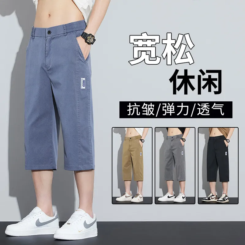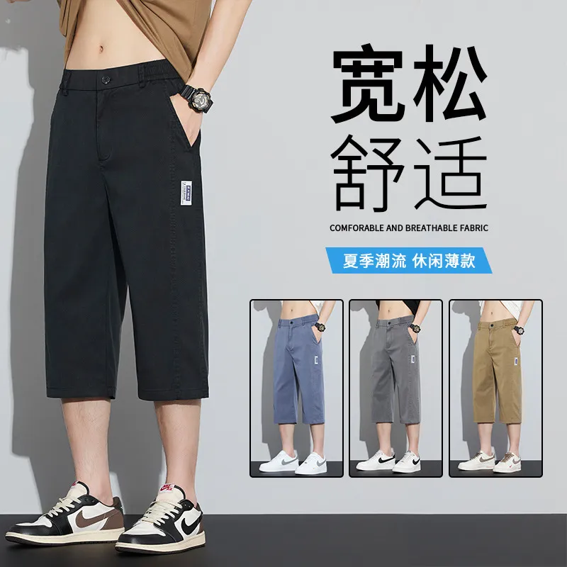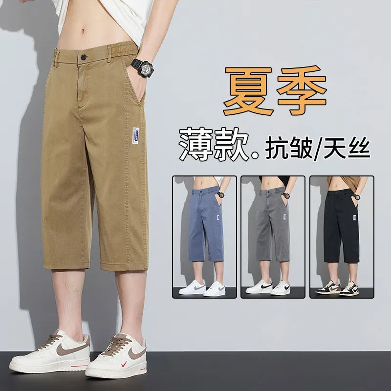 夏季薄款天丝男士七分裤时尚潮流宽松直筒松紧腰运动透气休闲裤