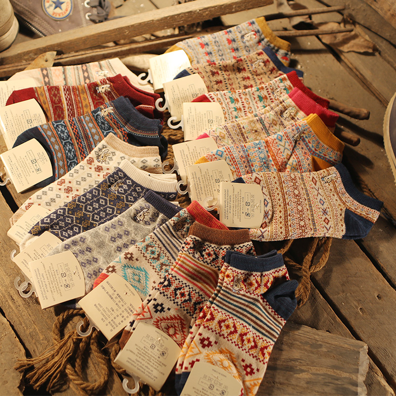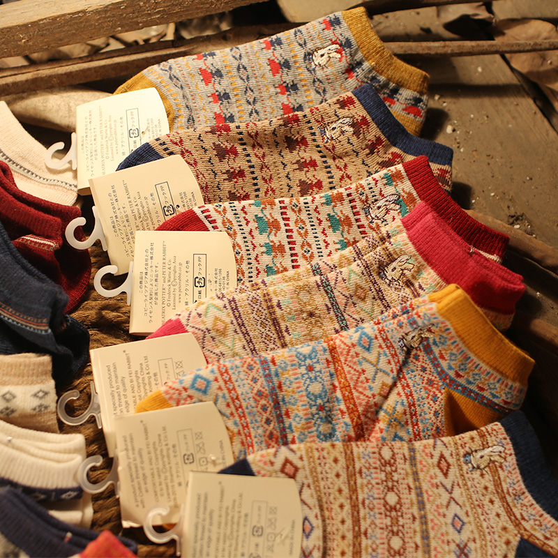 夏季日系复古原宿风女棉袜子波西米亚民族风刺绣卡通兔子薄短船袜