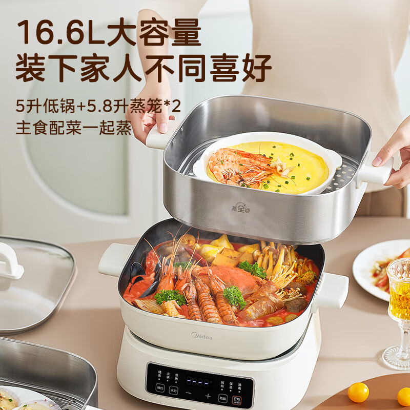 美的家用多功能不锈钢材质电蒸锅