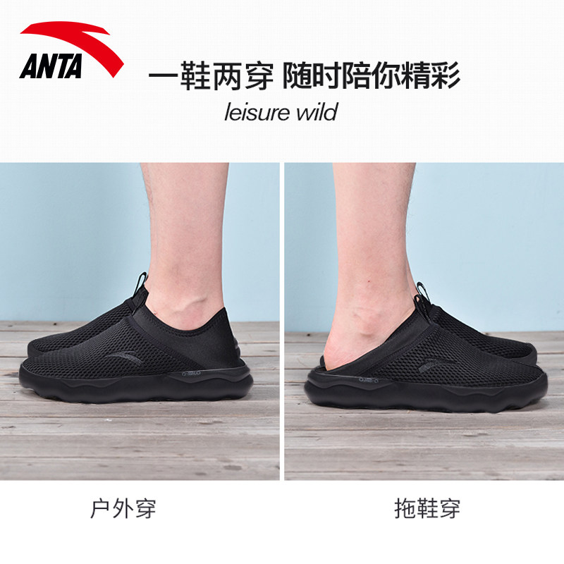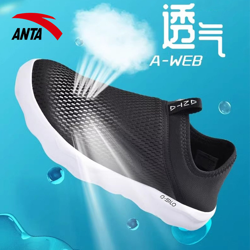 安踏男鞋夏季一脚蹬网鞋男款懒人鞋透气网面鞋子软底休闲运动鞋男