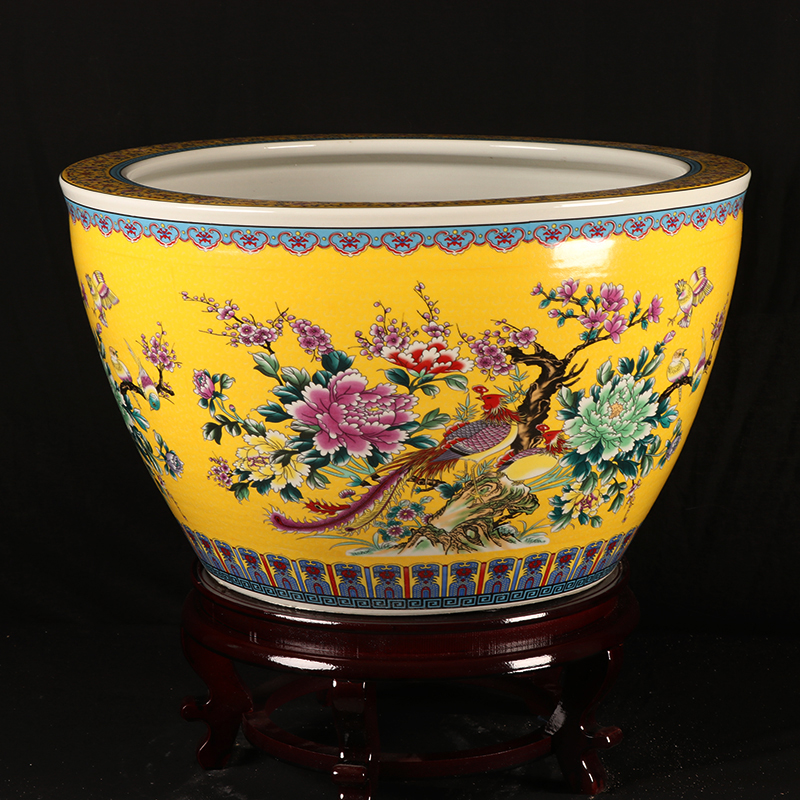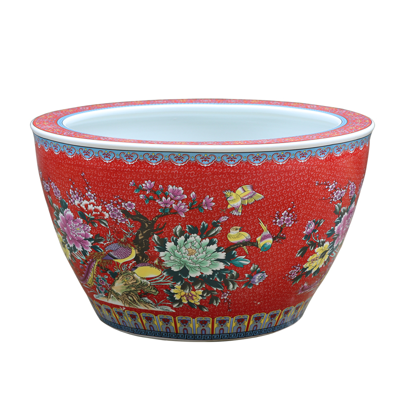 景德镇陶瓷鱼缸大号红色睡莲盆荷花缸乌龟缸落地大水缸客厅摆件
