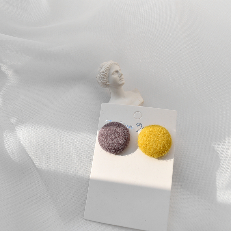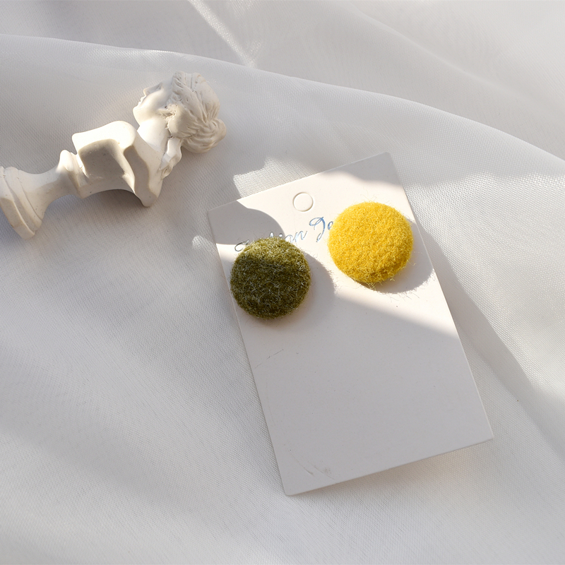 秋冬耳环女气质大方简约彩色撞色不对称毛绒绒网红毛毡耳钉耳夹女