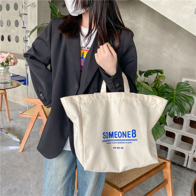 小众法式帆布包女单肩慵懒风文艺百搭大容量字母学生上课书包袋夏