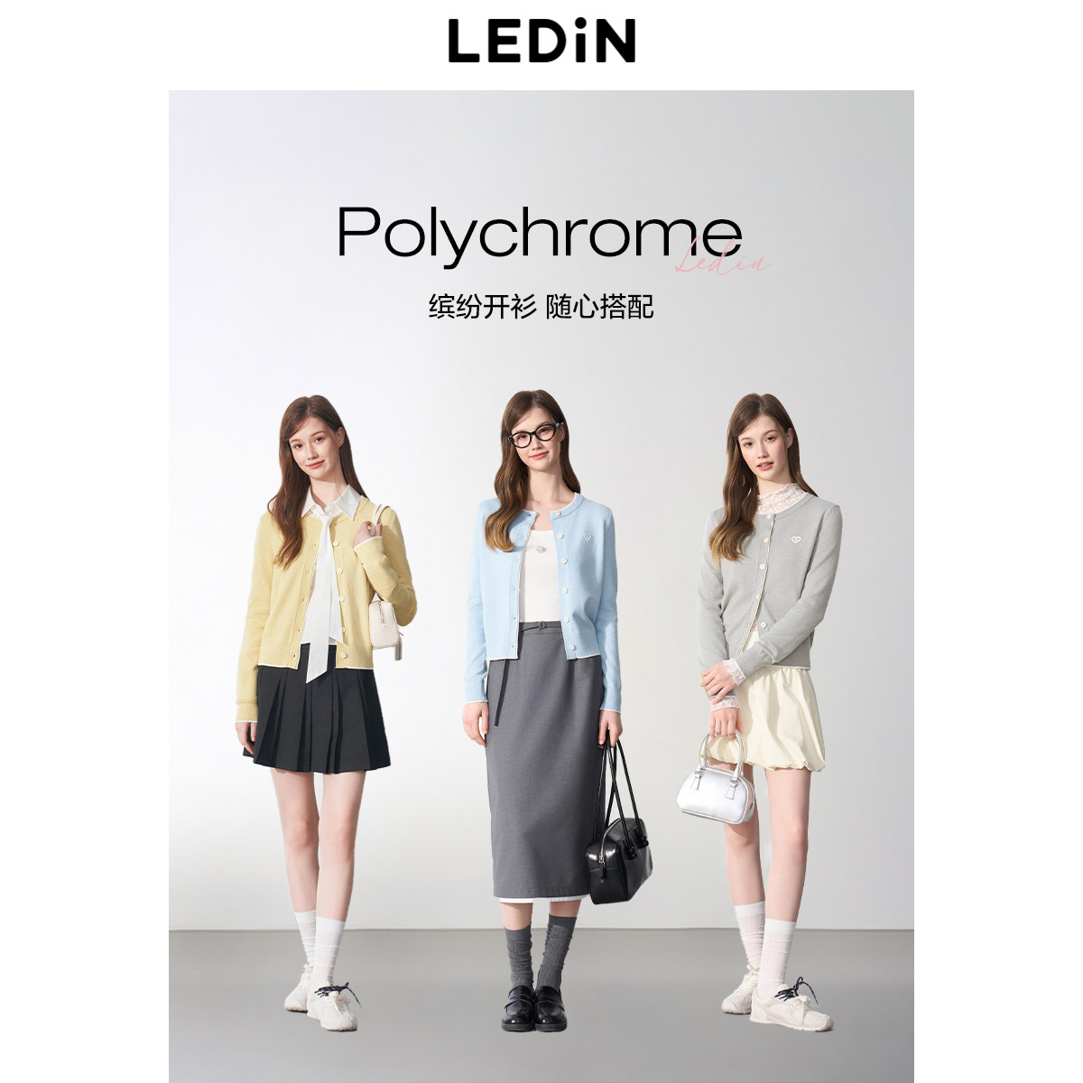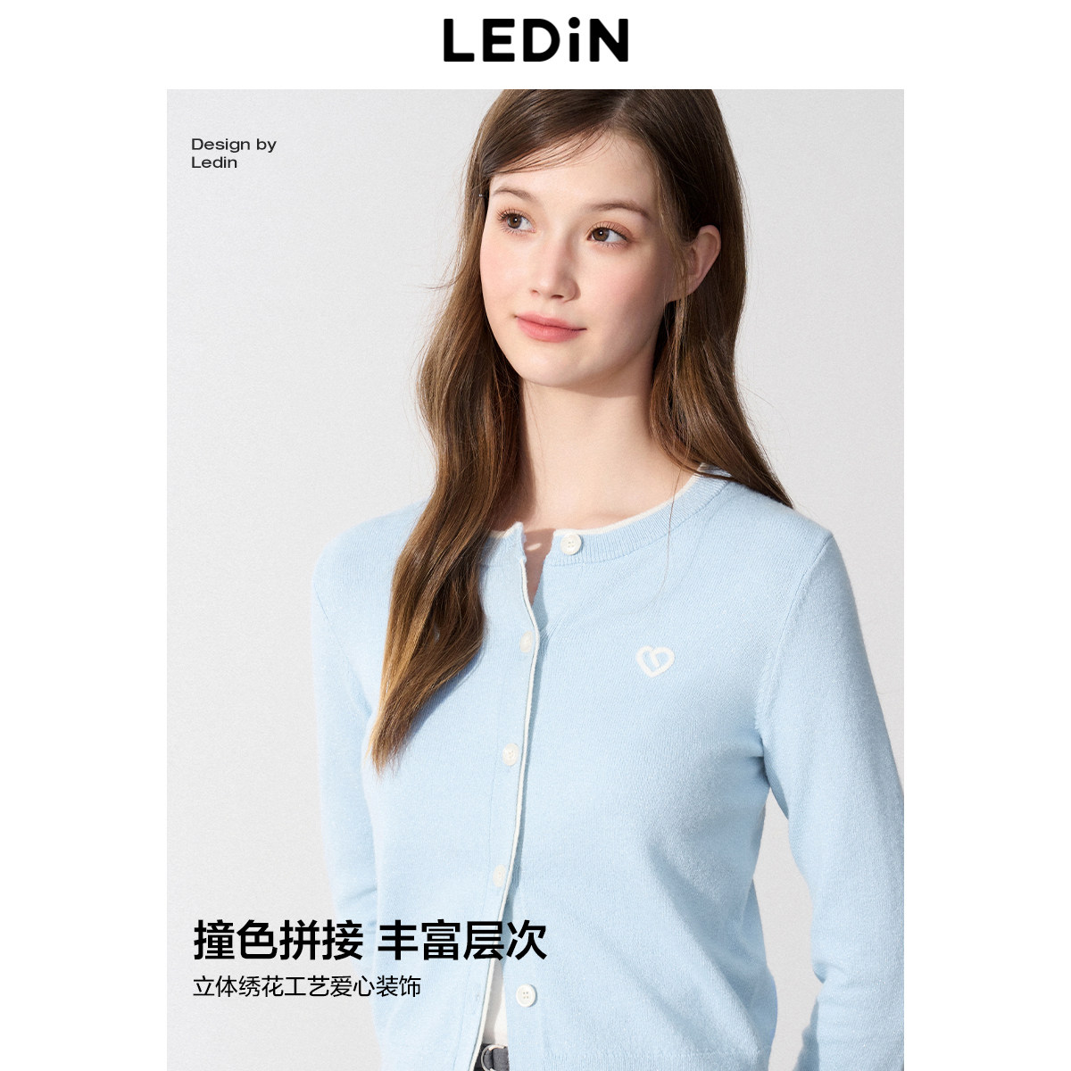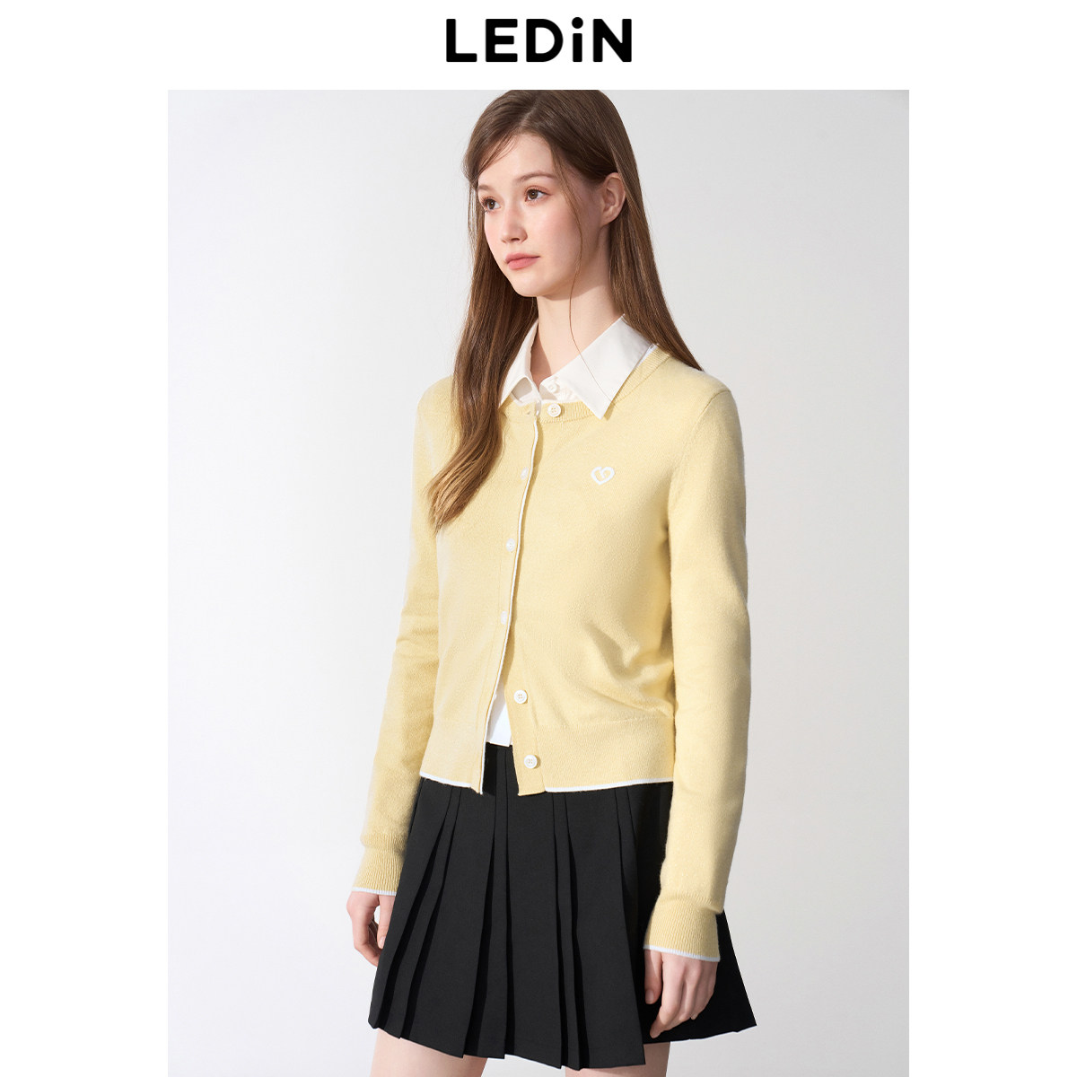 乐町撞色拼接假两件线开衫2025年春季新款合体简约针织毛衣外套达