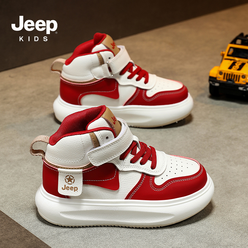 jeep童鞋软底女童跑步鞋板鞋2025新款秋季高帮男童鞋子儿童运动鞋