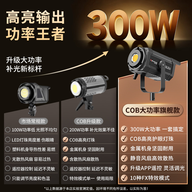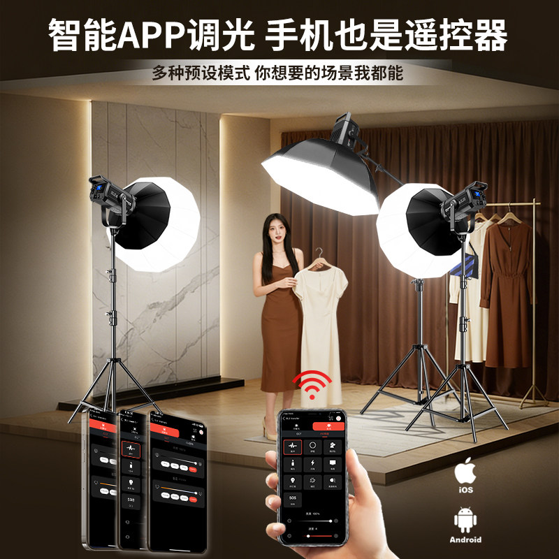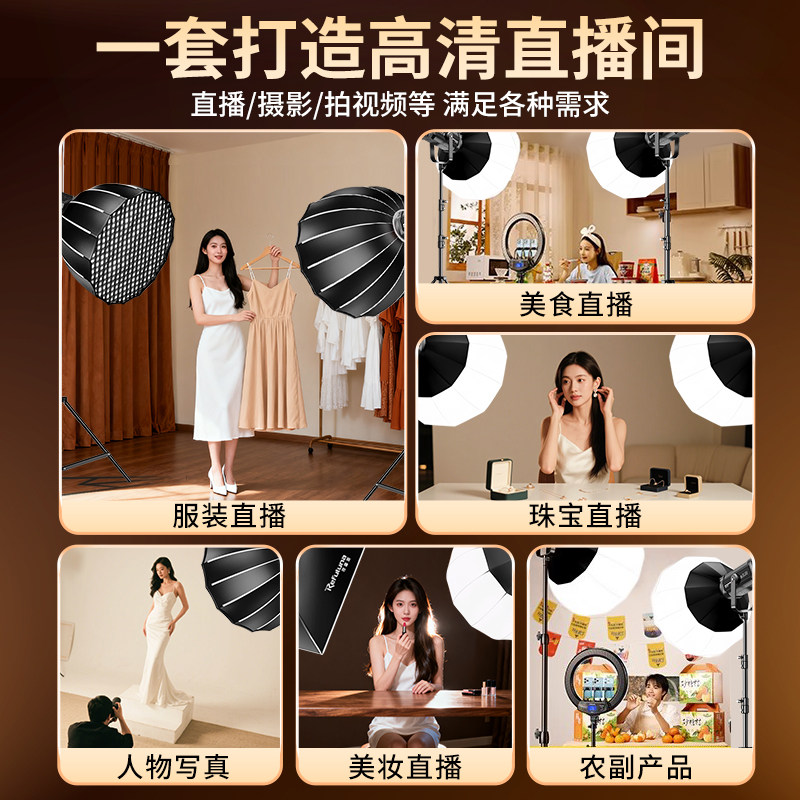 300W直播补光灯主播专用直播间专业拍摄打光COB摄影灯LED美颜球形拍照室内拍视频深口影棚服装影视APP常亮灯