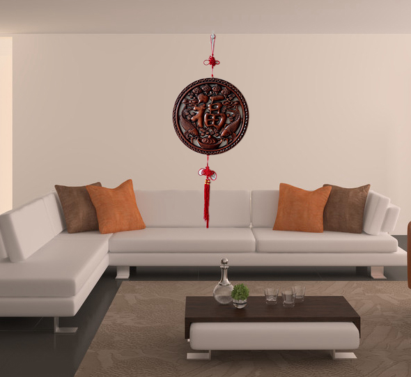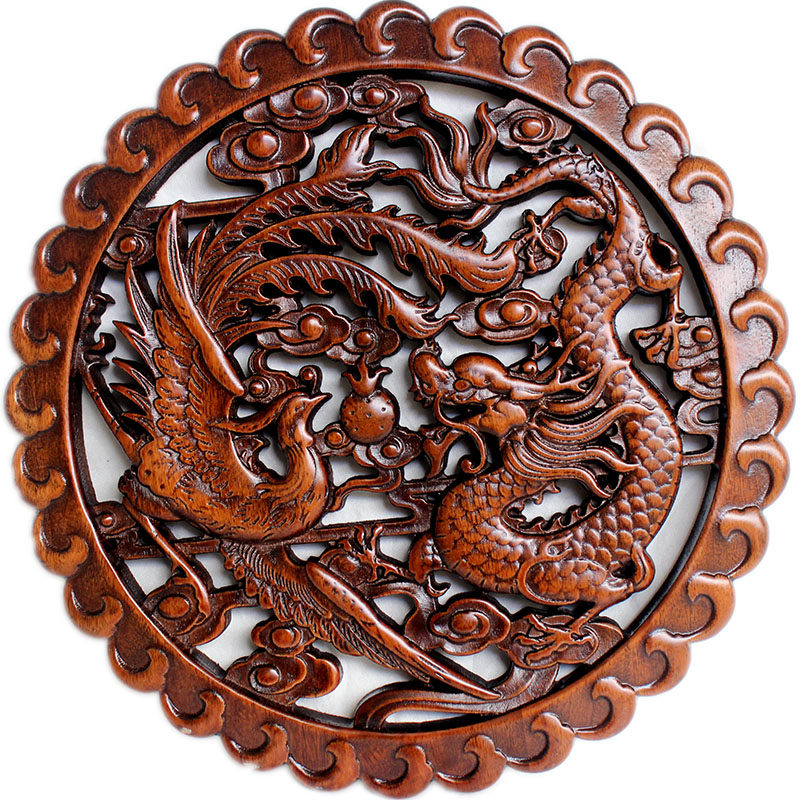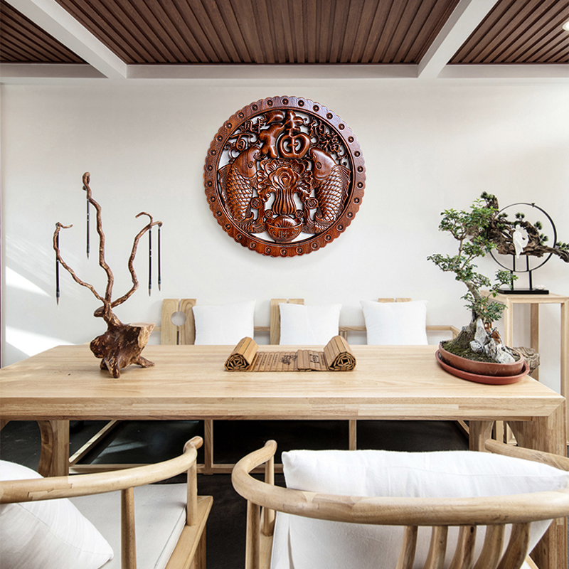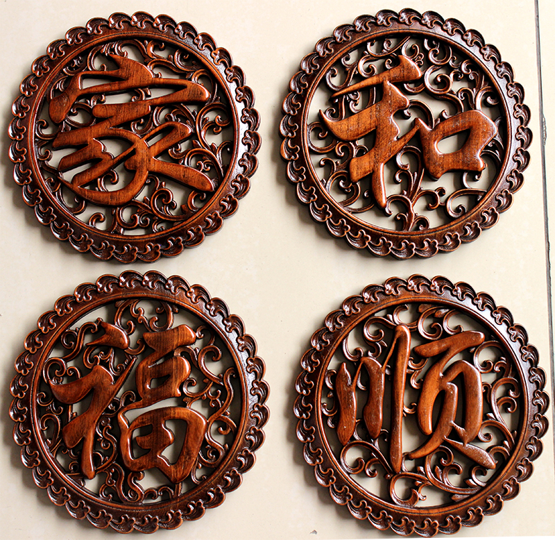 东阳木雕实木花格中式装修电视背景墙圆形福字挂件客厅挂画工艺品