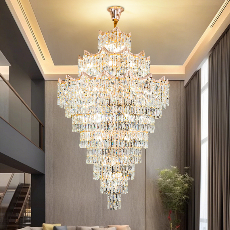 轻奢别墅中空复式楼大吊灯水晶大厅旋梯楼梯后现代客厅酒店大堂灯
