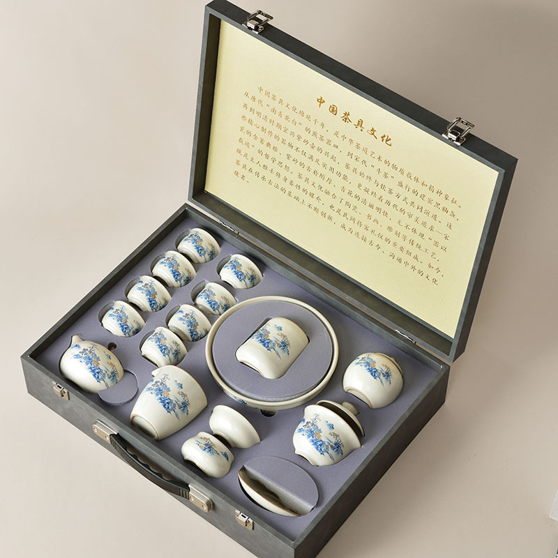 汝窑青花山水茶具套装家用功夫茶壶茶杯整套送长辈领导生日伴手礼