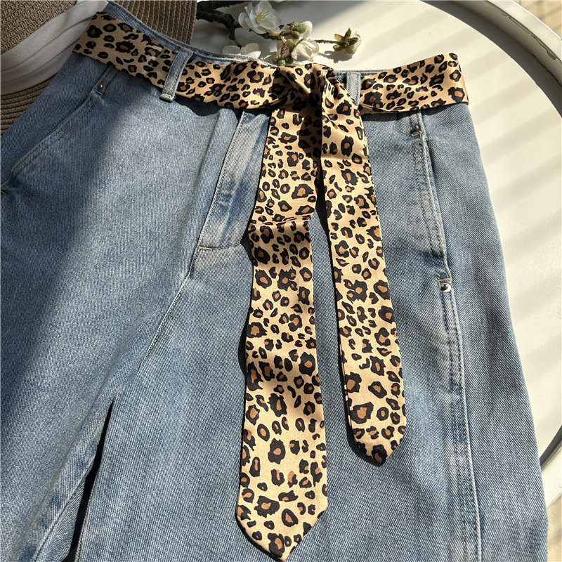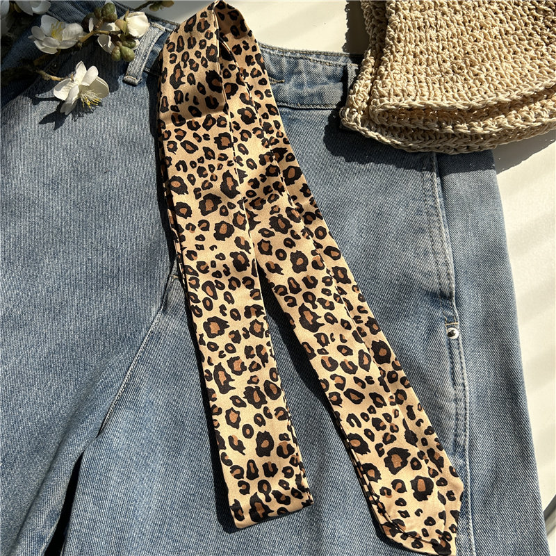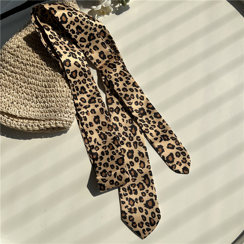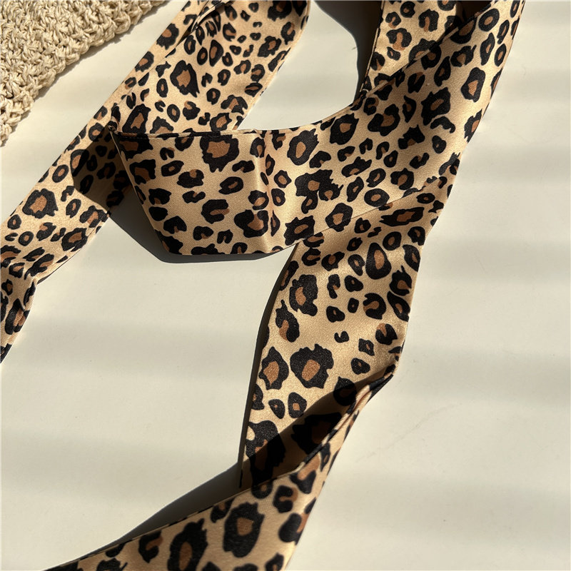 豹纹丝巾围巾薄款女士复古长条围脖女发带时尚设计感领巾腰带配饰