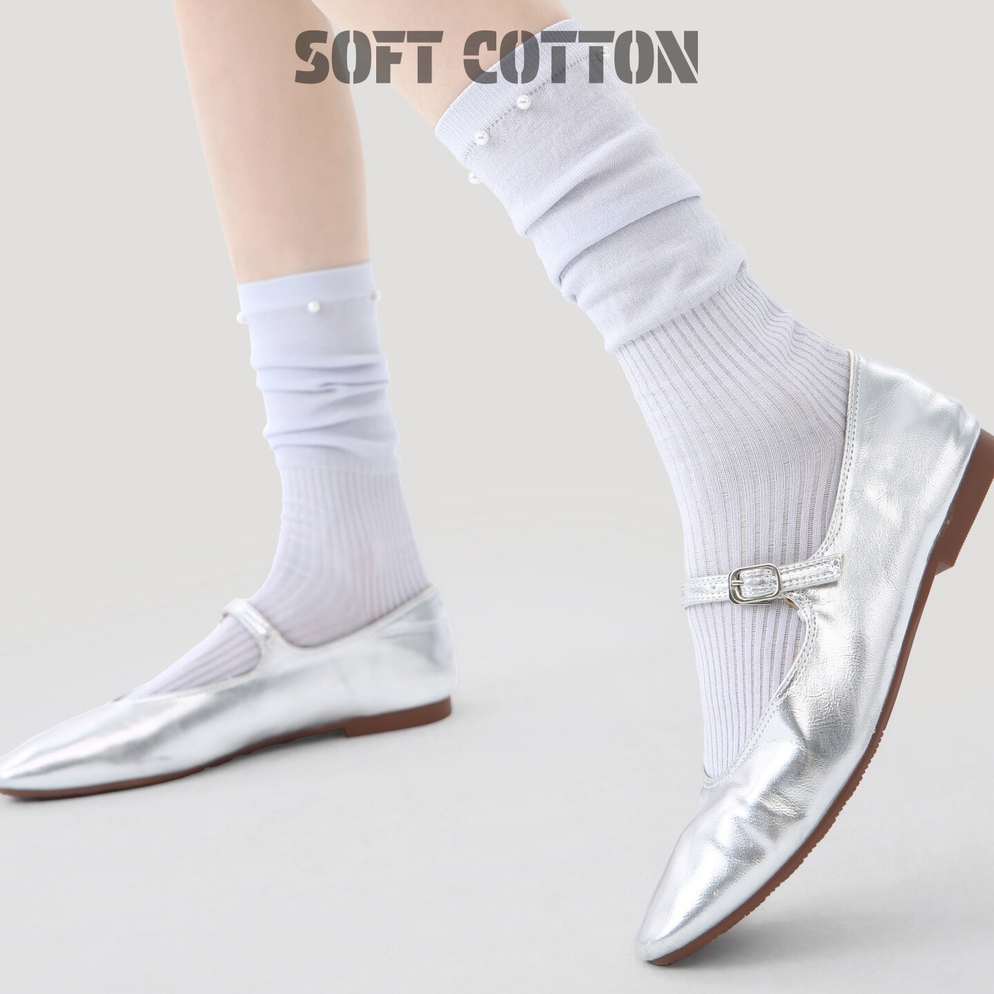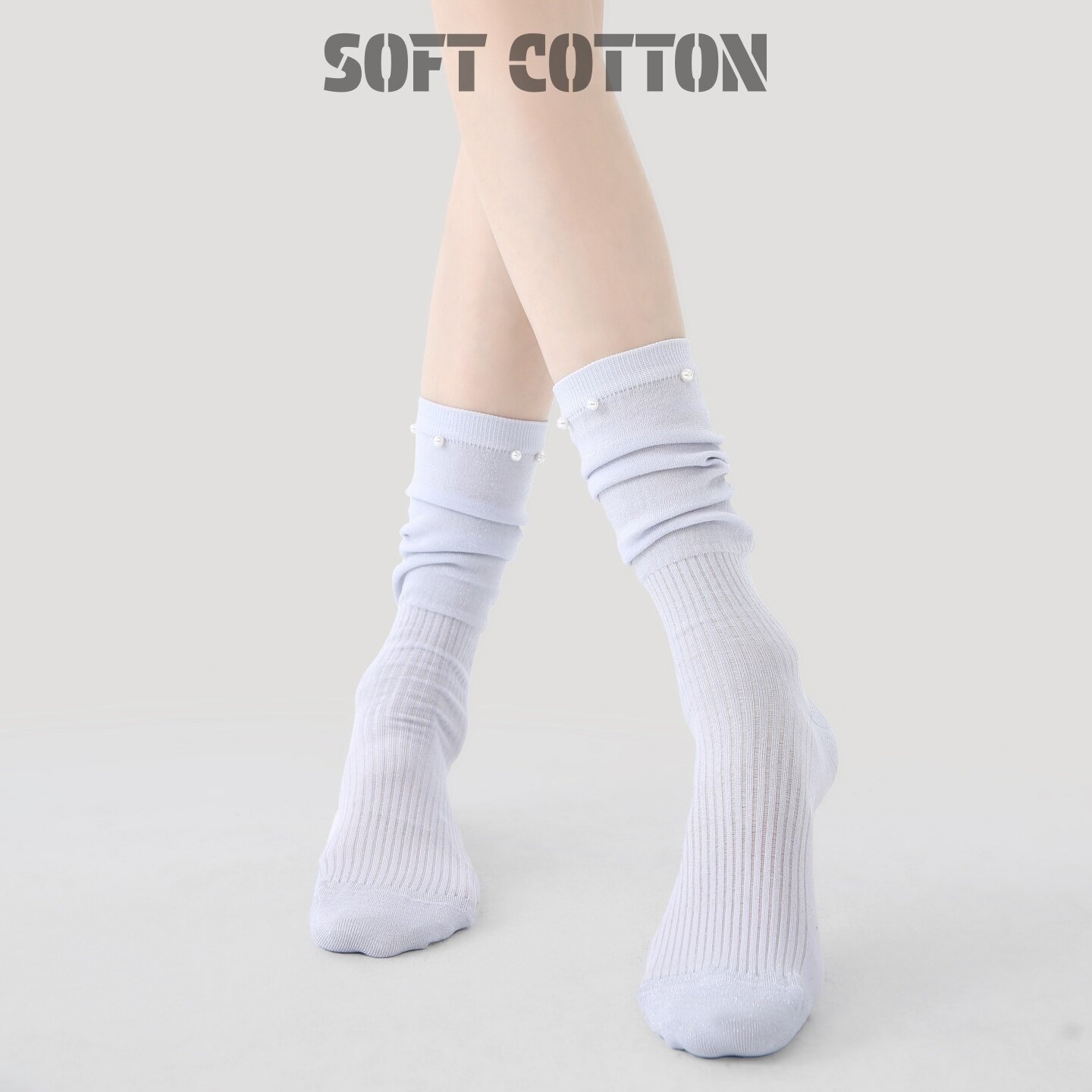 日系学院风堆堆袜女士春夏季薄款珍珠装饰竖纹坑条中筒长袜ins潮
