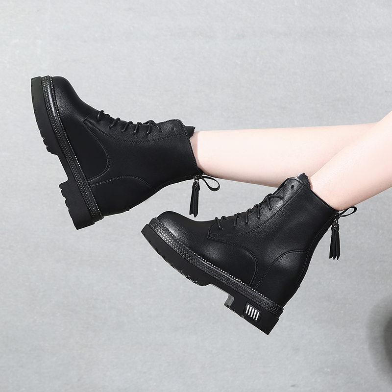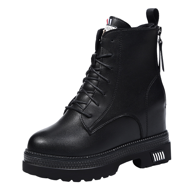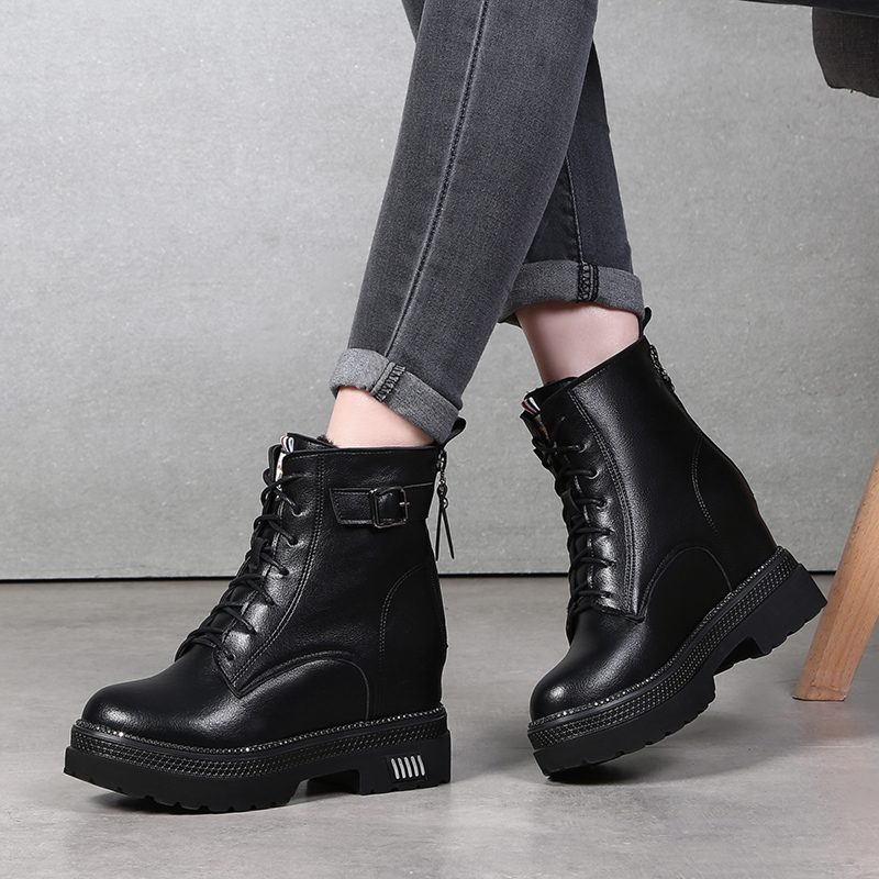 内增高短靴女2021冬季新款女鞋坡跟百搭加绒后双拉链厚底马丁靴女