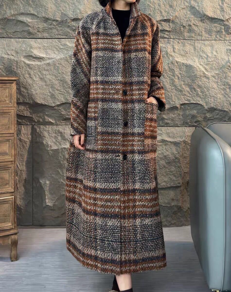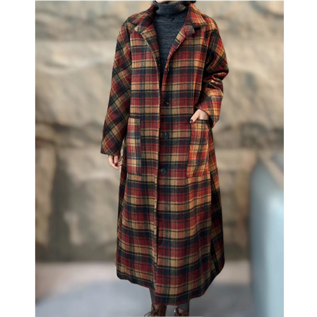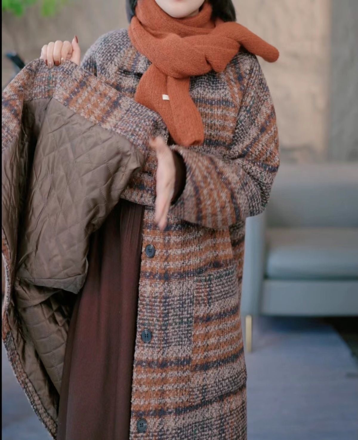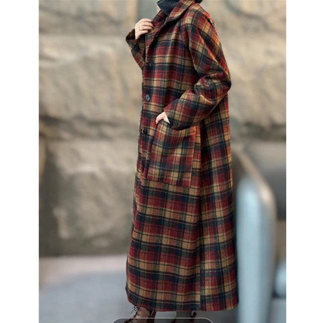 复古毛呢百搭显瘦外套秋冬款2023格子新款宽松加厚中长款呢大衣女