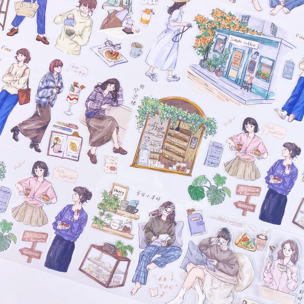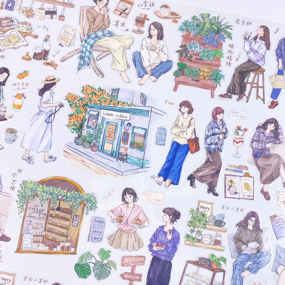 手帐分装胶带咖啡控轻时光文创人物咖啡看PET素材账流麻diy贴纸