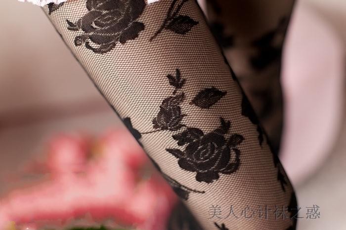 夏季超薄丝袜女复古玫瑰花朵提花连裤袜白色透明打底袜子