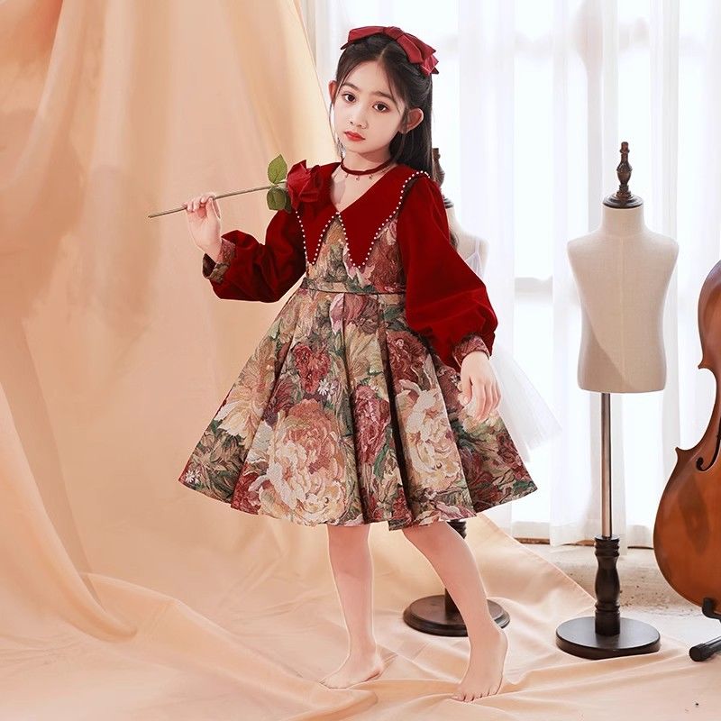 女童春秋连衣裙2025新款洋气儿童秋季公主裙女孩红色长袖秋装裙子