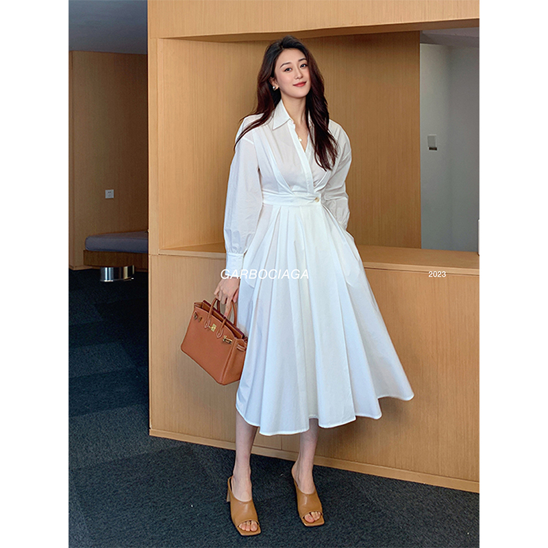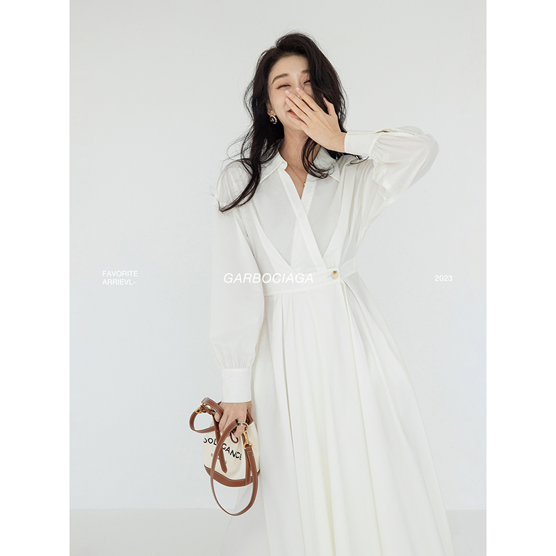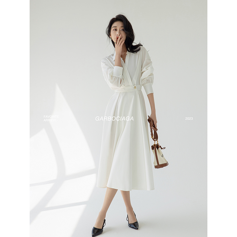 Garbociaga龙喜儿 朗姆白玫瑰 设计感气质法式长袖连衣裙女3151