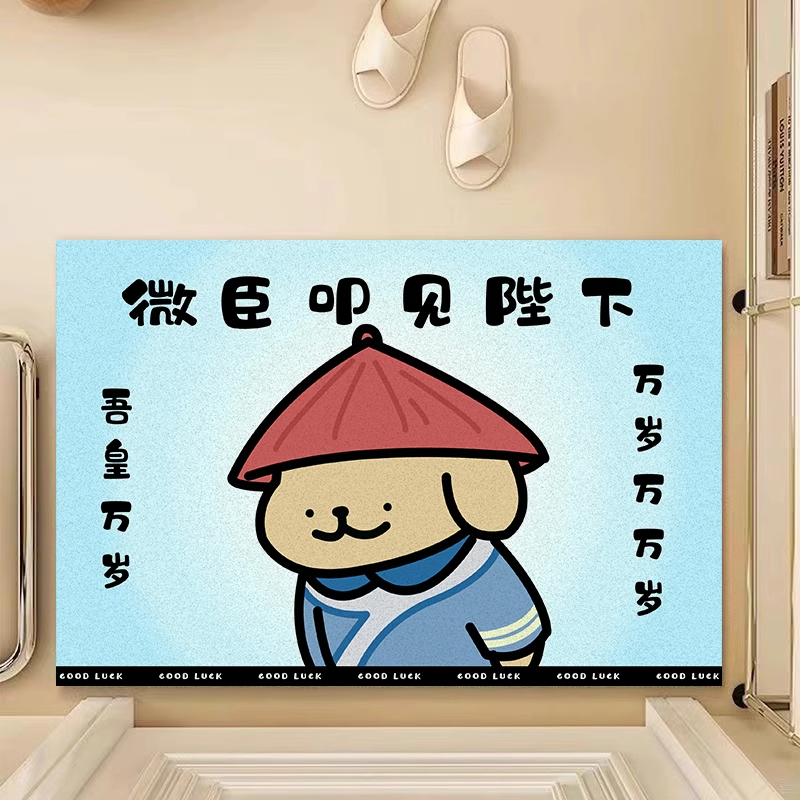 线条小狗皇帝入户可爱趣味丝圈地垫防滑垫脚垫耐脏可裁剪进门地毯