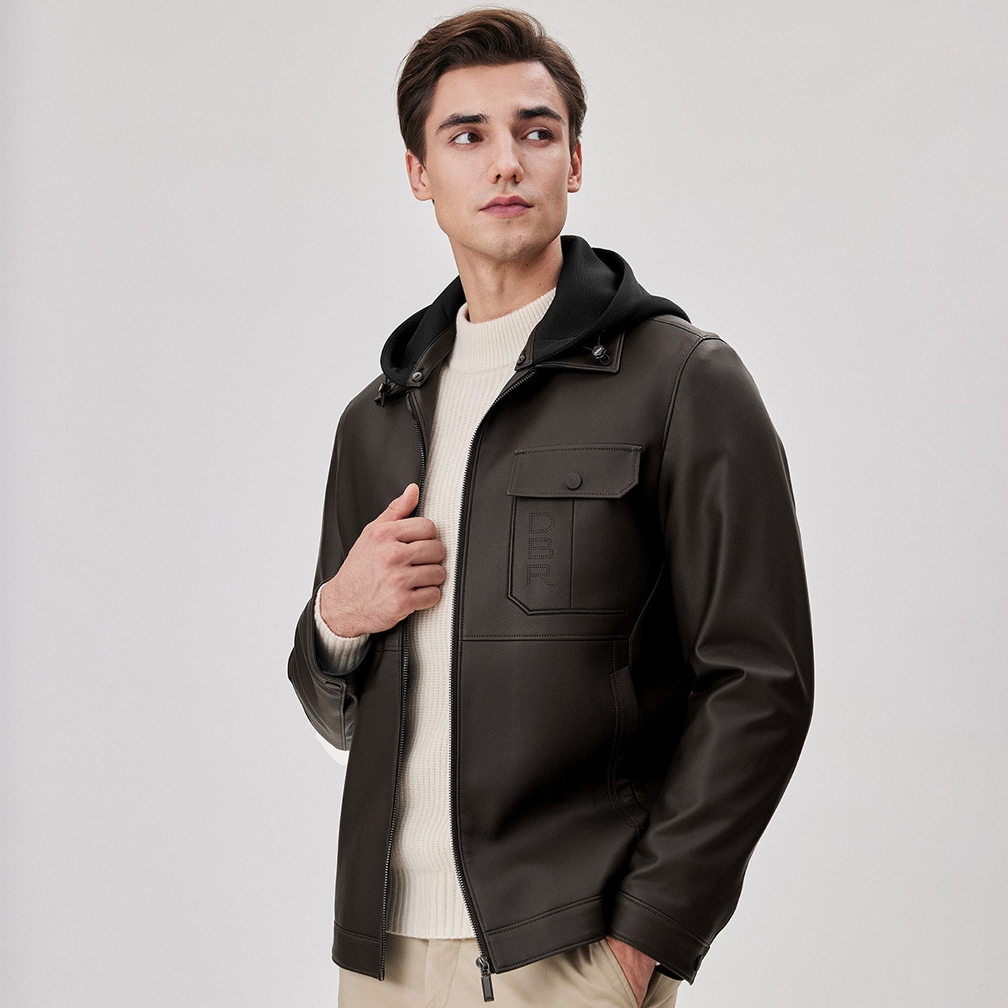 杉杉PU皮衣可拆连帽夹克外套男士