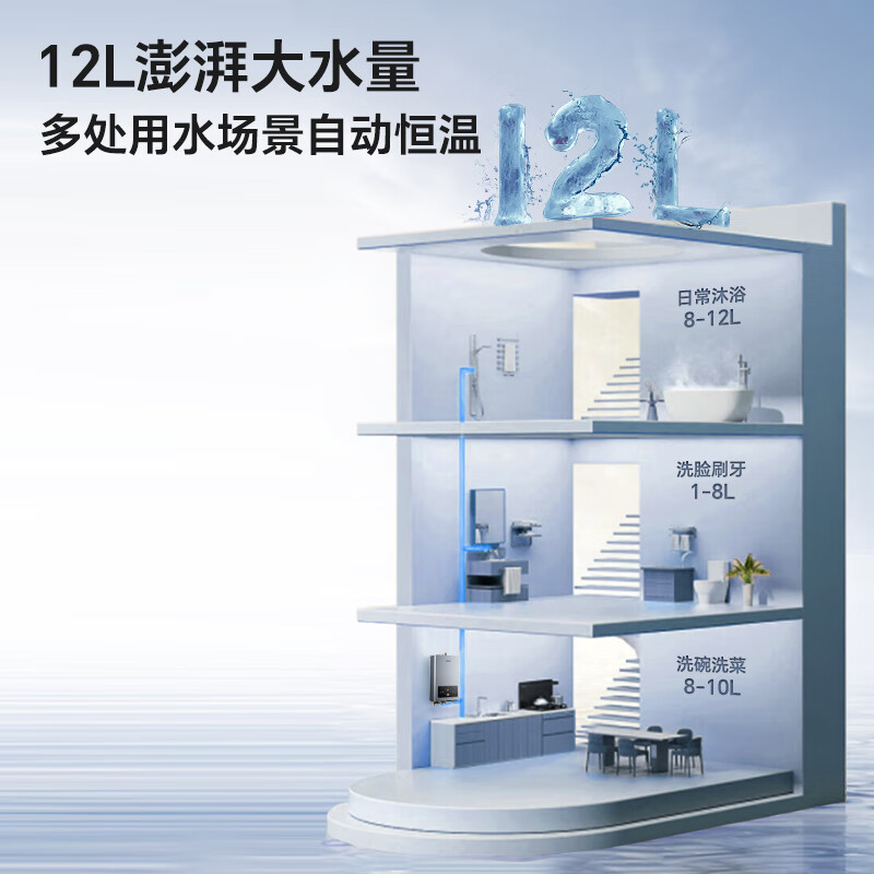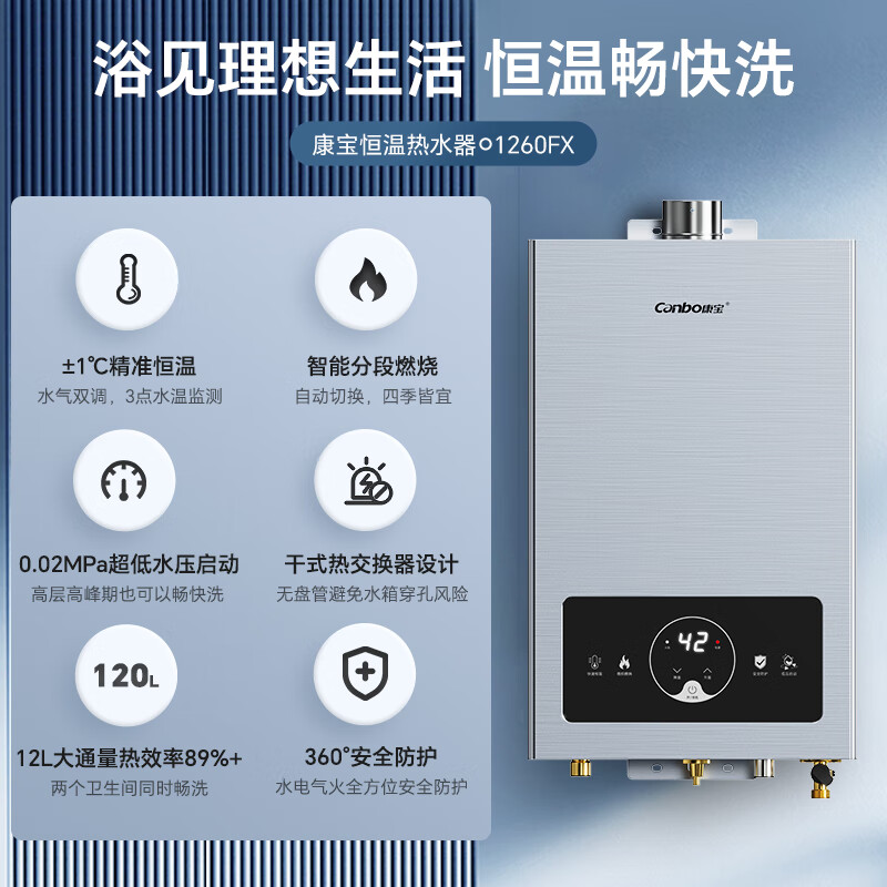 康宝燃气热水器12升强排式家用厨房恒温低水压启动1260FX