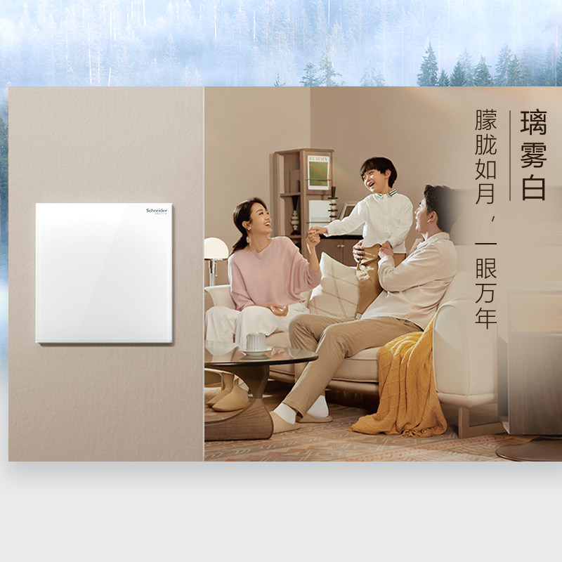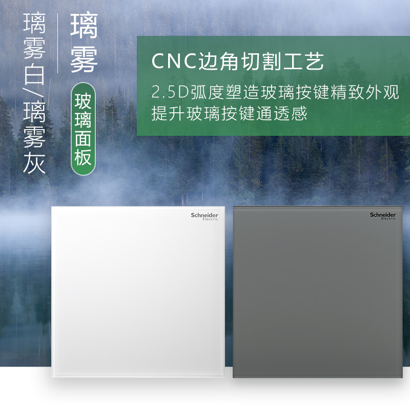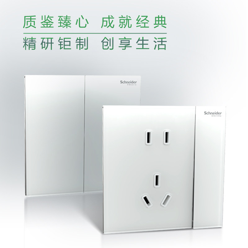 施耐德超薄哑光肤感亚克力玻璃开关插座面板86型五孔致铂璃雾白