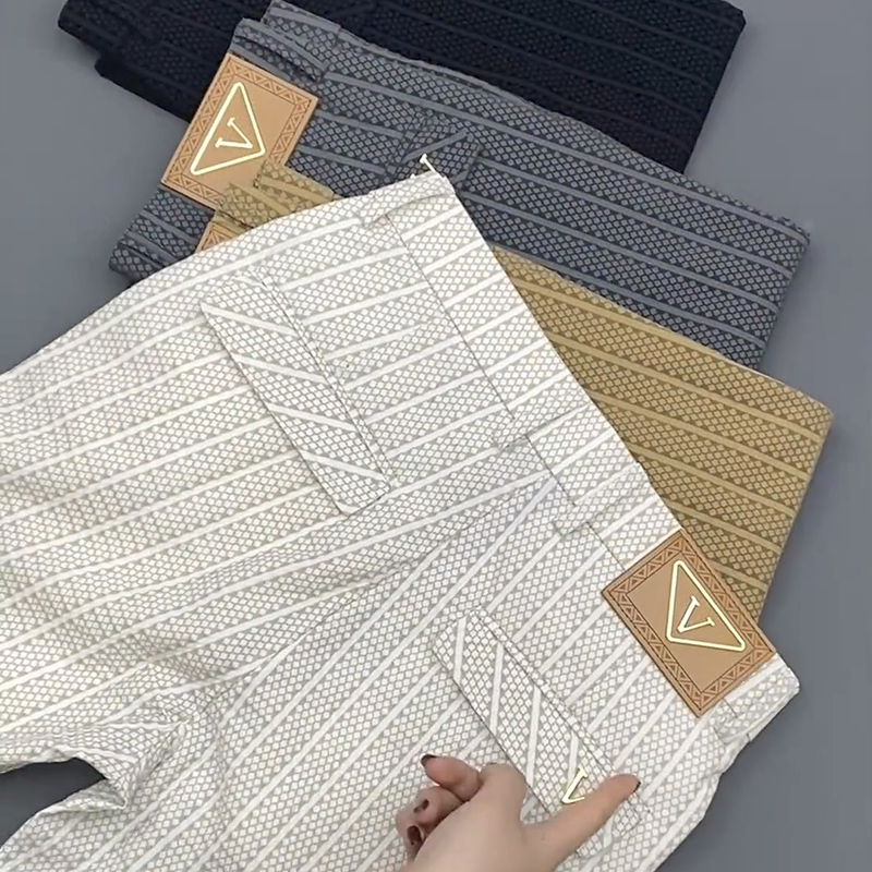 高档轻奢商务休闲裤男夏季薄款速干冰丝西裤欧货修身条纹直筒长裤