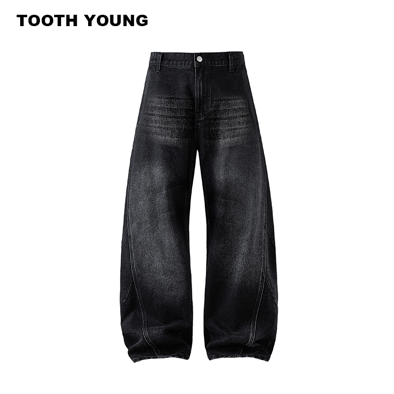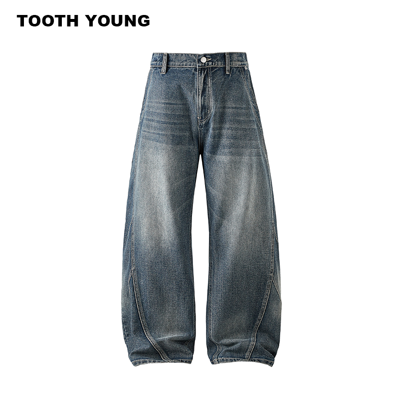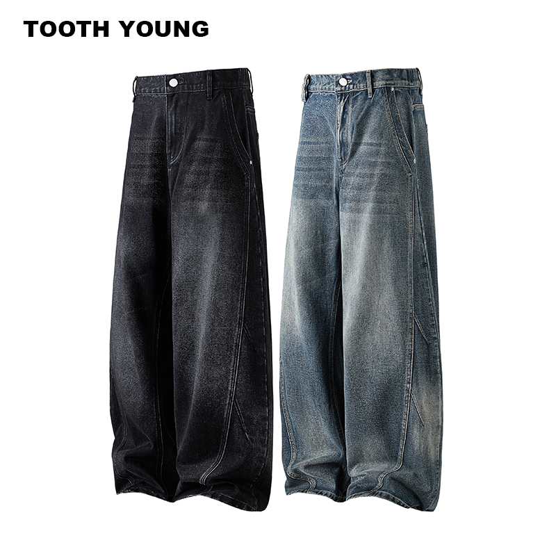郑一爱穿搭【街头入场券】水洗做旧高街男装秋季弯刀大码牛仔裤