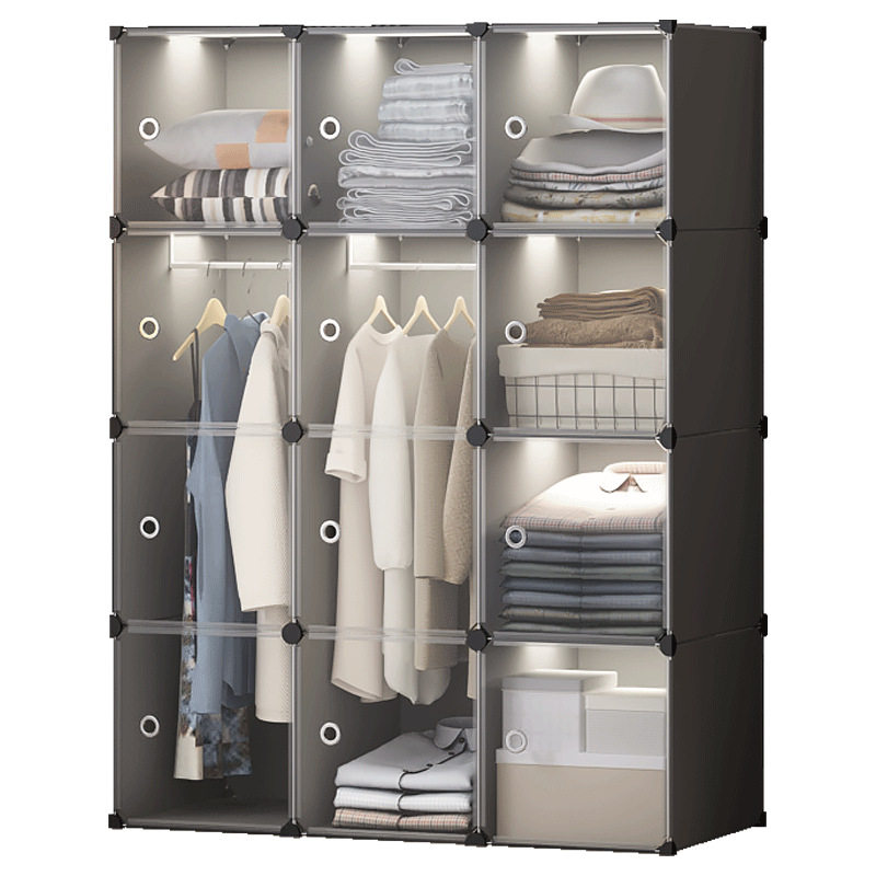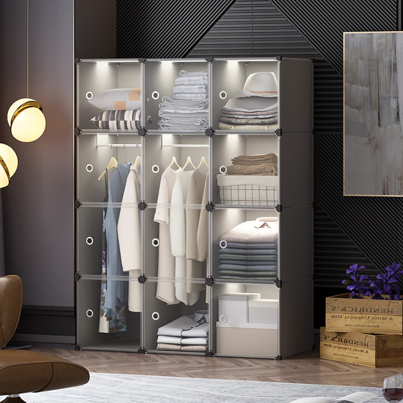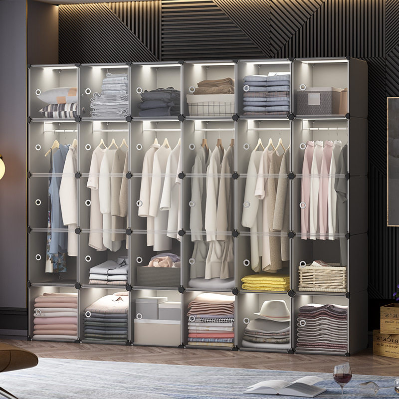 简易衣柜家用卧室出租房透明门布衣橱网红小户型收纳柜子现代简约