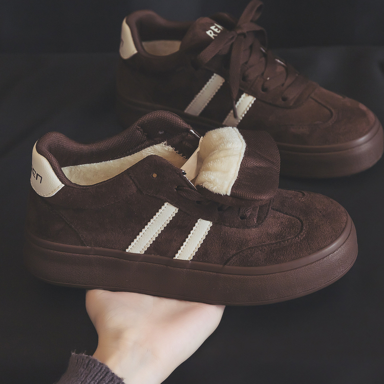 人本德训鞋女款2025新款韩版冬季保暖板鞋女鞋加绒帆布鞋女二棉鞋