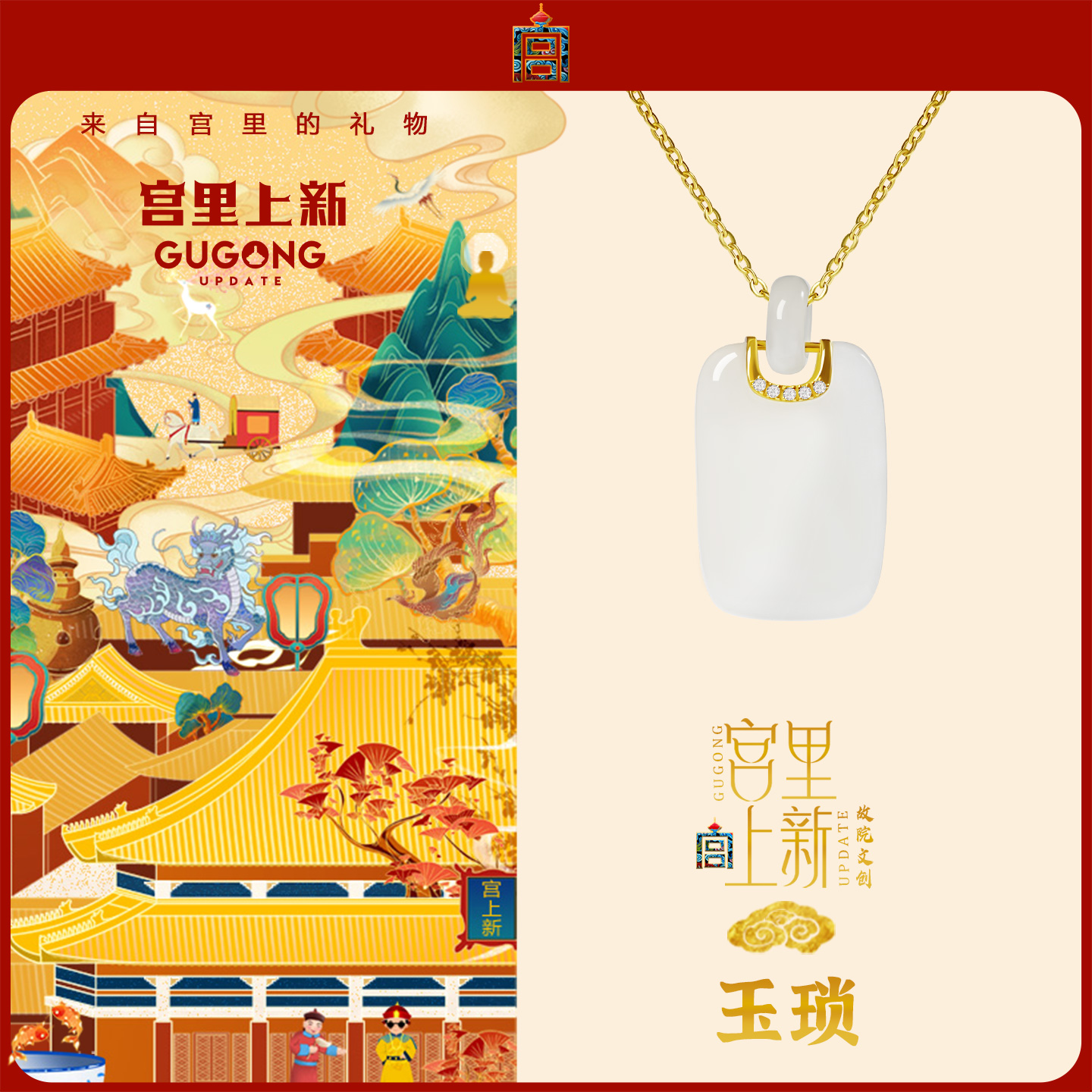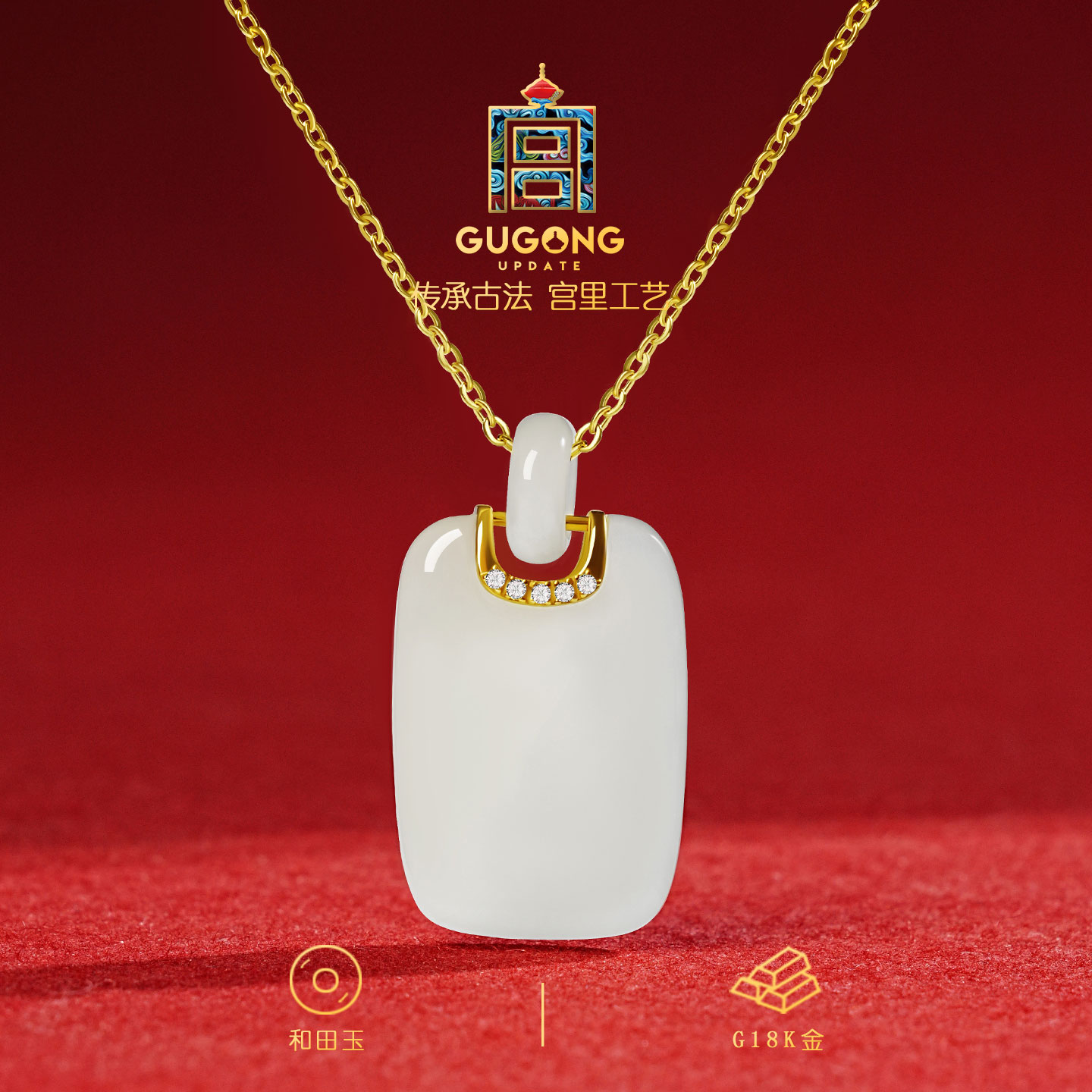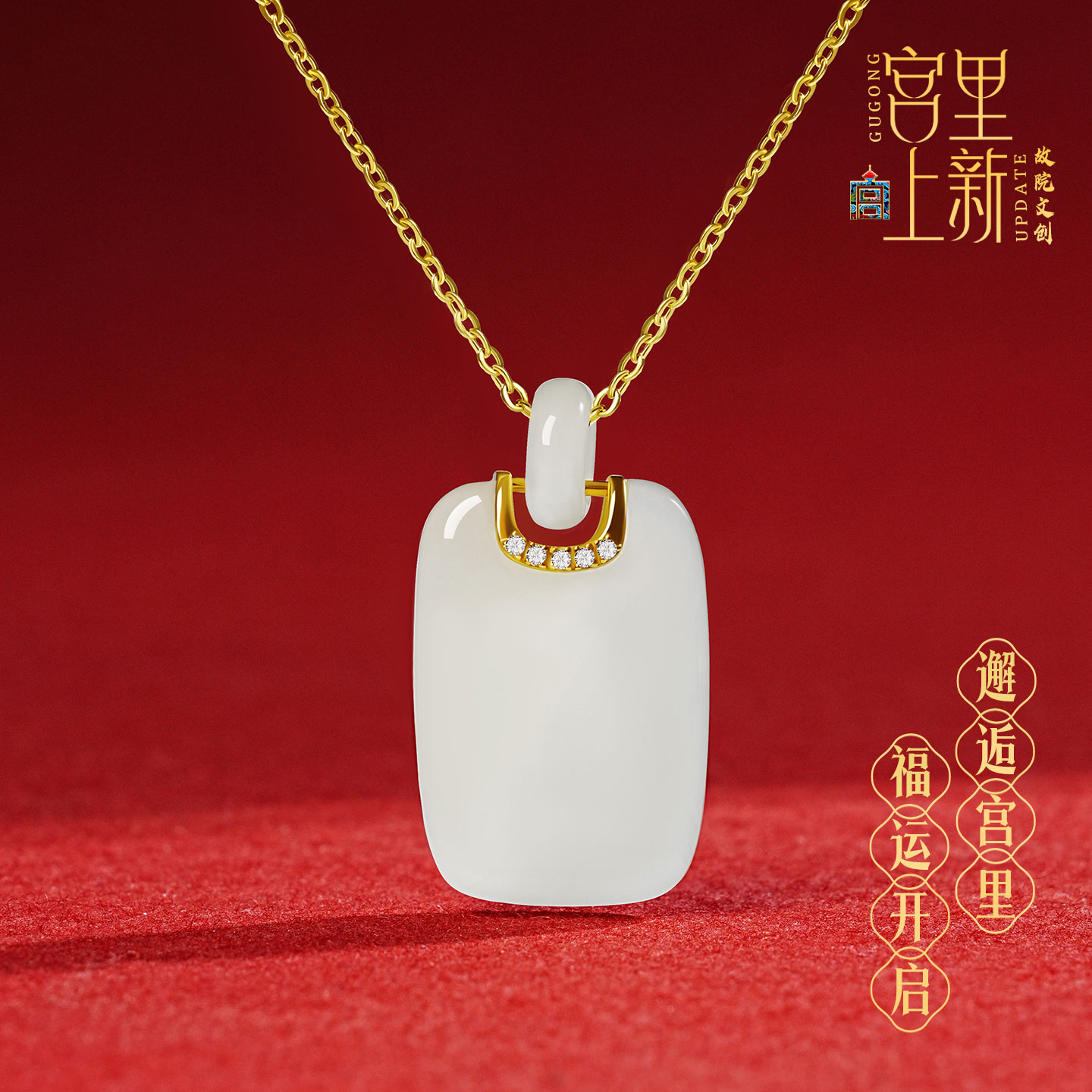 宫里上新和田玉项链女款18k金镶玉吊坠新中式玉坠生日礼物送妈妈
