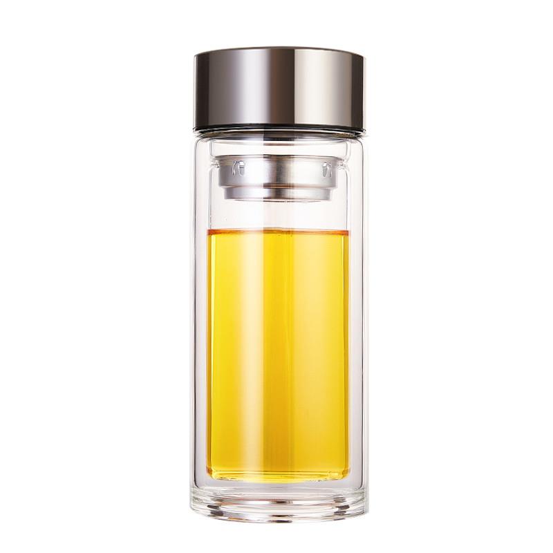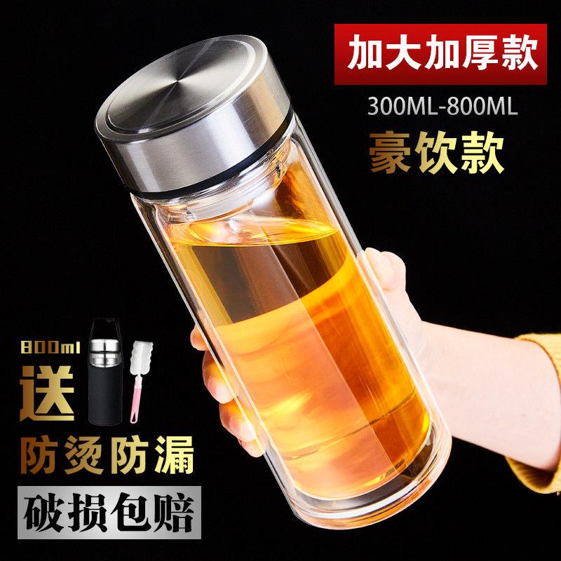 新款大容量双层玻璃茶杯隔热高档水杯便携带盖男女泡茶杯定制印字