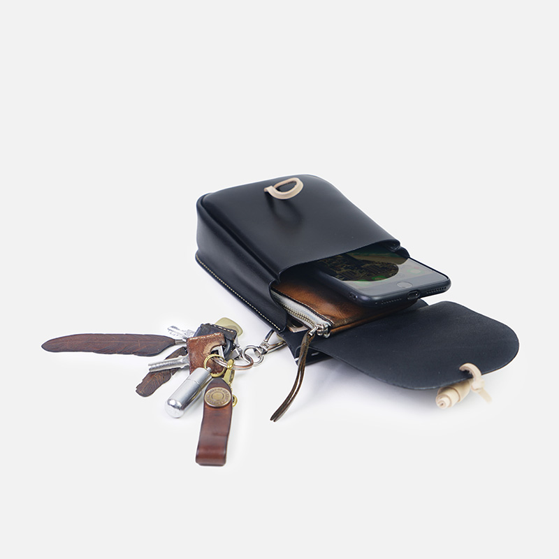匠线 手工制作竖款小包 植鞣牛皮复古方形迷你包男女斜挎包手机包