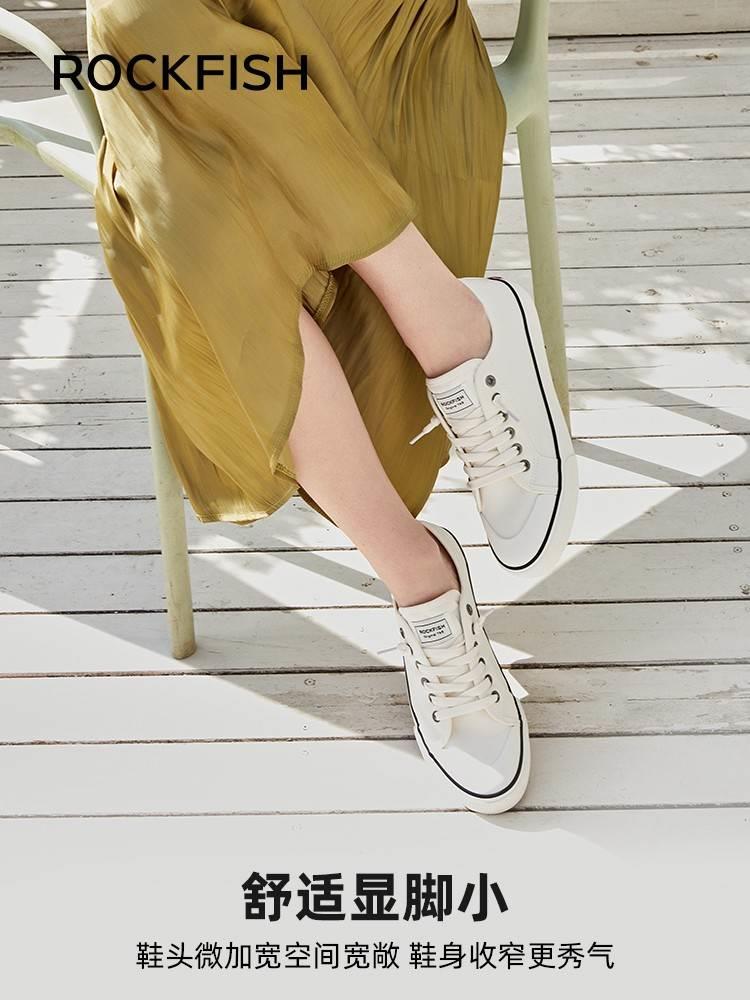 Rockfish正品防泼水帆布鞋女小白鞋一脚蹬渔夫鞋懒人秋季休闲鞋
